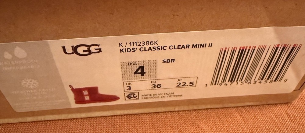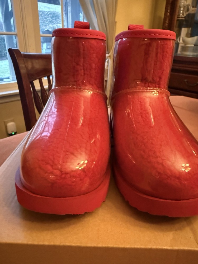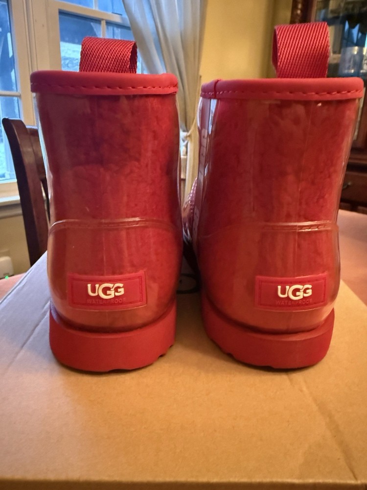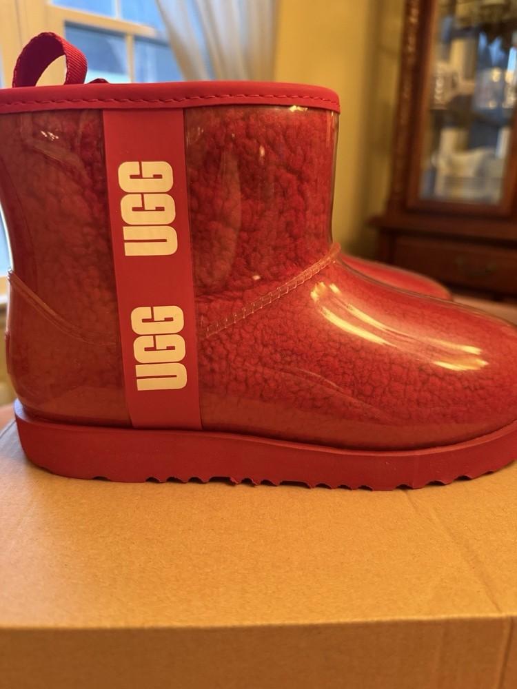 BRAND NEW with box, UGG Kids Classic Clear Mini II Red with clear coating Kids size 4 Smoke free home Bin 2