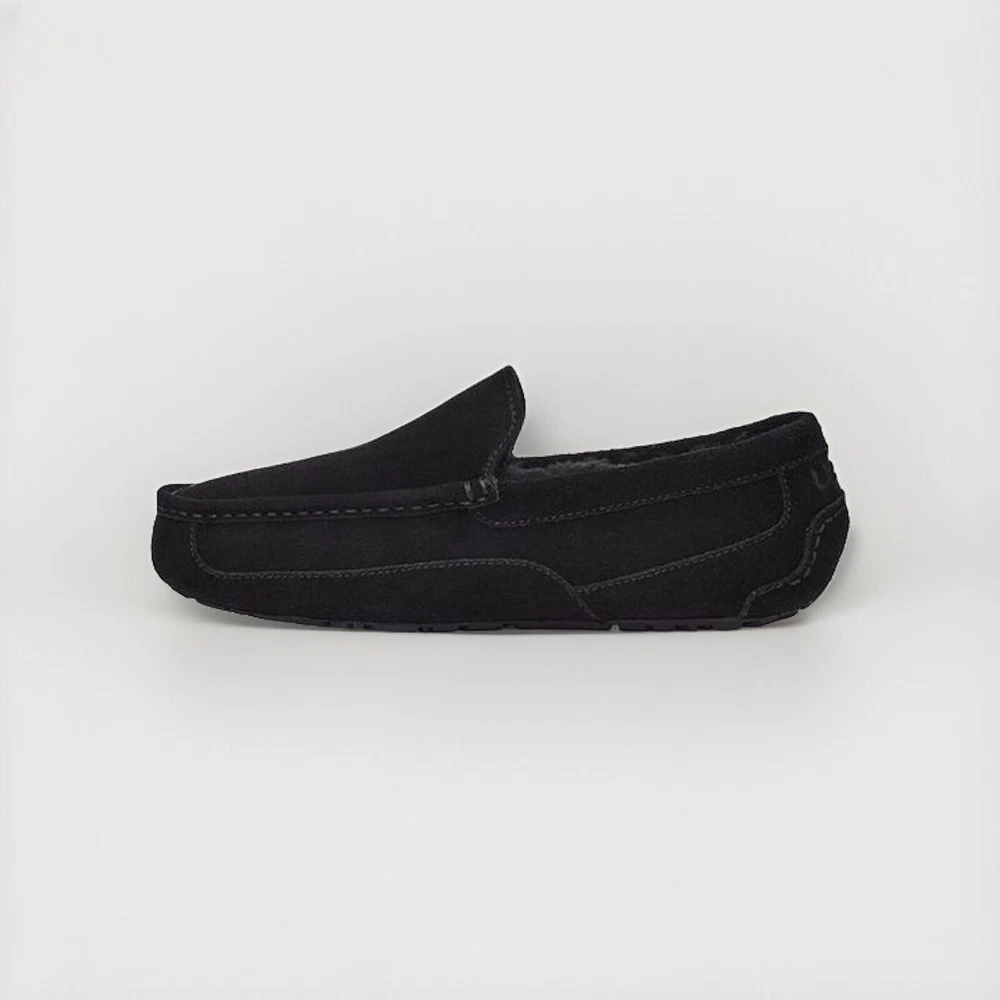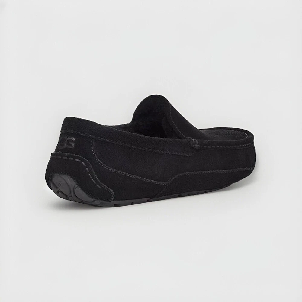 Elevate your casual wear with these UGG Ascot slippers. The slip-on style and solid black color make them a versatile addition to your shoe collection. The suede upper material and sheepskin lining material provide warmth and comfort, while the rubber outsole material ensures durability. Perfect for winter, fall, and spring, these slippers are suitable for travel, activewear, and casual occasions. The wool insole material adds an extra layer of warmth and comfort. The UGG brand is known for its quality and style, and these slippers are no exception. Available in UK shoe size 9 and US shoe size 10, these slippers are a must-have for any shoe lover.
