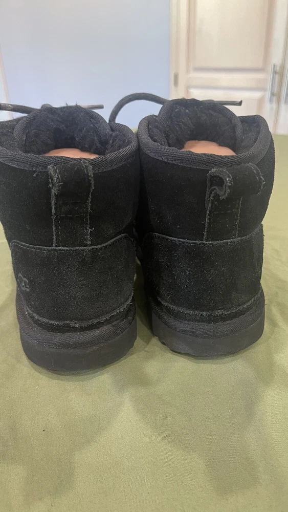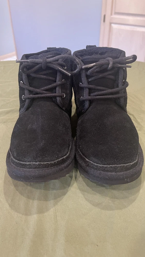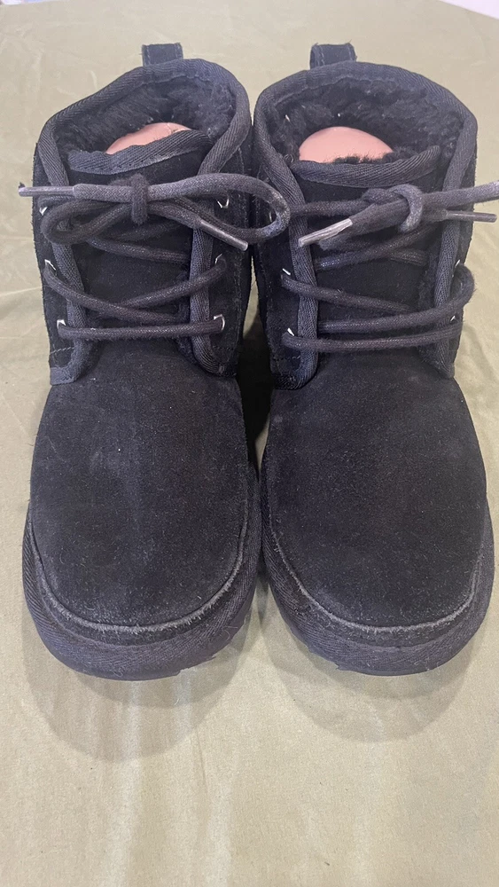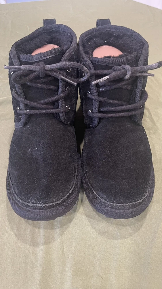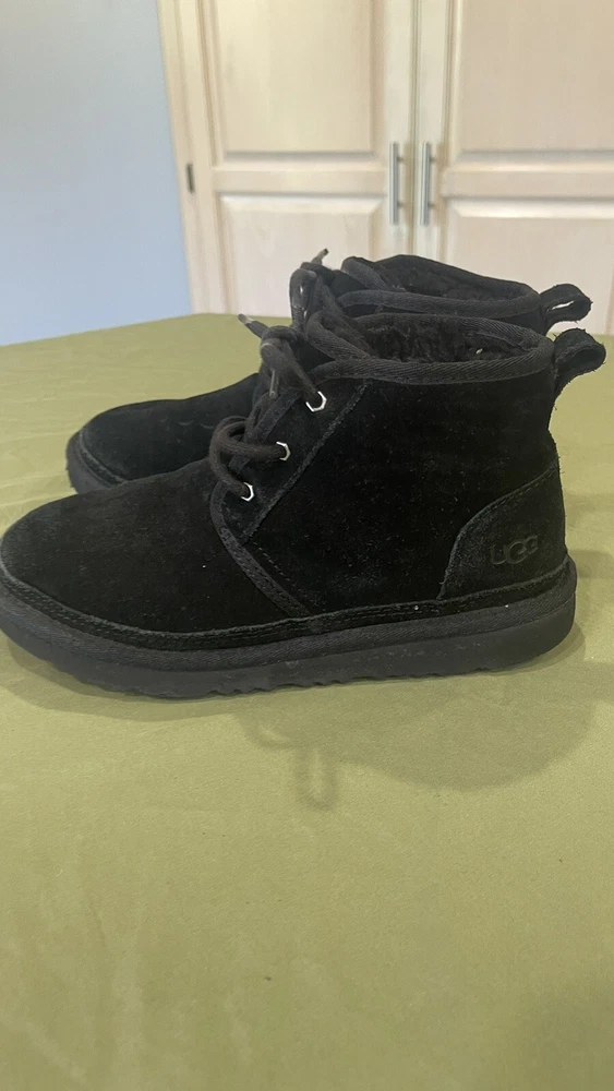 These UGG Neumel II boots are perfect for your little one who loves style and comfort. The ankle-length boots feature a round toe shape and lace-up closure, making them easy to put on and take off. The boots are made of high-quality suede material, ensuring durability and longevity. The boots have a flat heel style and are designed for unisex kids, with a US shoe size of 5 and UK shoe size of 4. The insole material is faux fur, adding to the overall comfort of the boots. These UGG boots are a perfect addition to your child's wardrobe, and are sure to make them look and feel great. Clean from a smoke-free home. Nice preowned condition with normal signs of usage. Please refer to all photos.