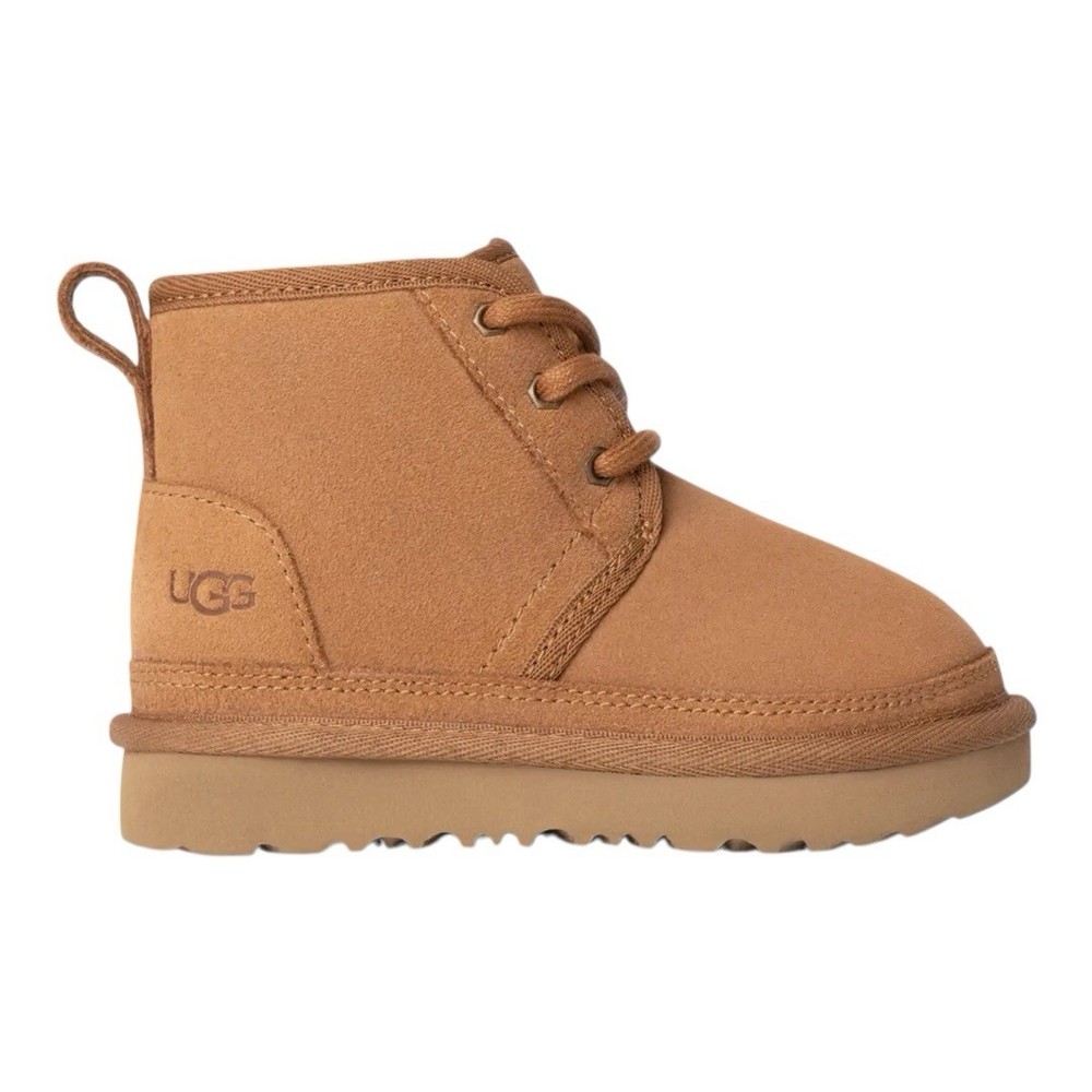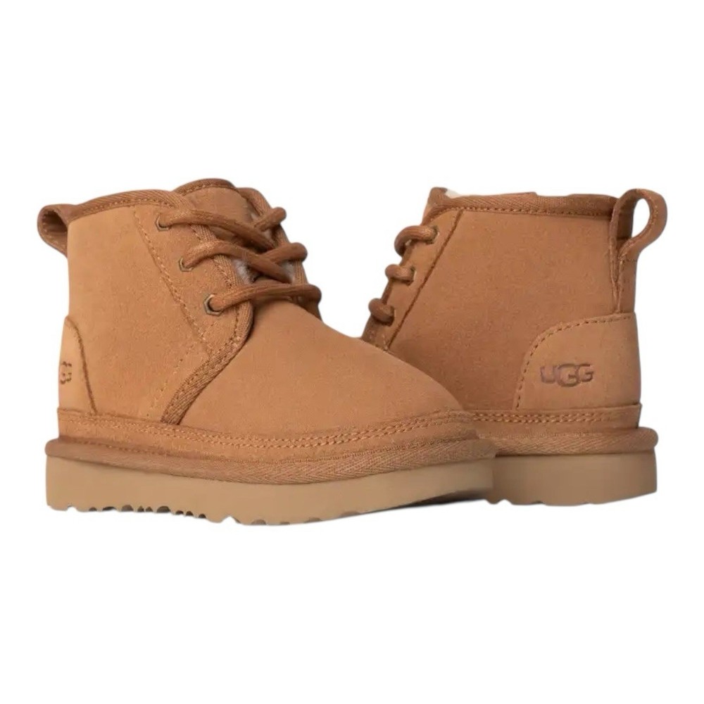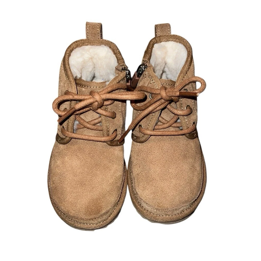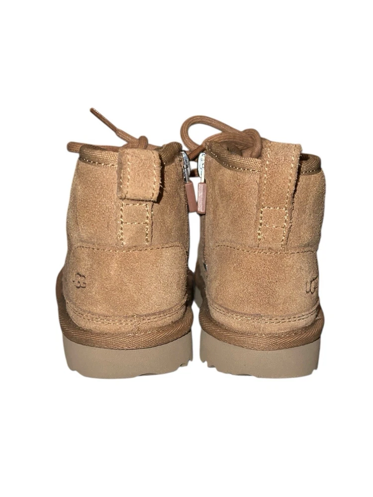 Heel Height: Flat (Under 1 in) Country of Origin: Vietnam Cleat Type: Rubber Brand: UGG Shoe Width: Standard US Shoe Size: 9 Color: Brown Vintage: No Type: Boot Product Line: Ugg Neumel Theme: Classic, Outdoor, Logo Handmade: No Accents: Logo, Zipper Performance/Activity: Walking Model: Neumel II Department: Unisex Kids Occasion: Casual Upper Material: Suede EU Shoe Size: 26 Heel Style: Flat Pattern: Solid Toe Shape: Round Toe Cushioning Level: Moderate Style: Chukka Shoe Shaft Style: Ankle Season: Winter, Fall Fabric Type: Lace Closure: Zip Features: Comfort, Lined, Insulated UK Shoe Size: 8 MPN: 1017320T Character: Boots