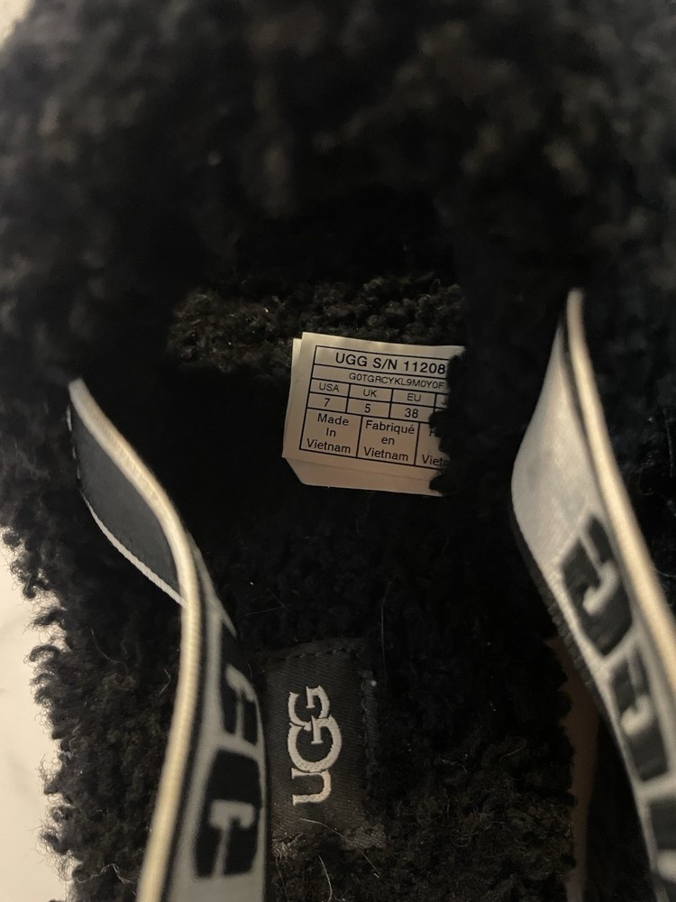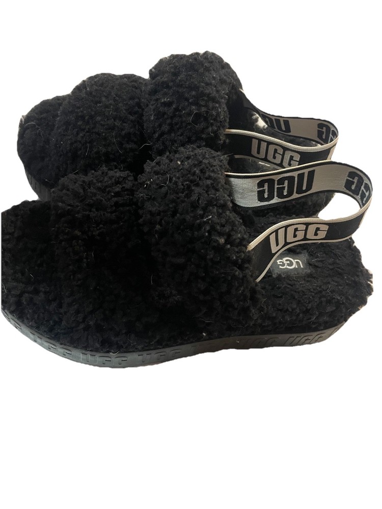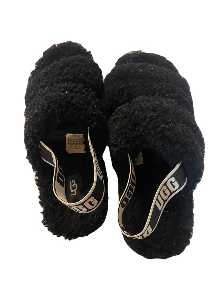 UGG Oh Yeah Fluff sandals in black. These are the open-toe style with the intentional center opening (not full slides and not closed-toe). These were never worn outside — only tried on once or twice indoors. There may be some light lint or hair from storage, which is common with shearling material and can be easily removed. No box included. Overall in very good condition with minimal signs of wear. Details: Brand: UGG Model: Oh Yeah / Fluff Yeah style Size: Women’s 7 Color: Black Style: Open toe sandal with intentional opening Material: Shearling upper Condition: Pre-owned, never worn outdoors Box: Not included Please review all photos for details. Feel free to message with any questions.