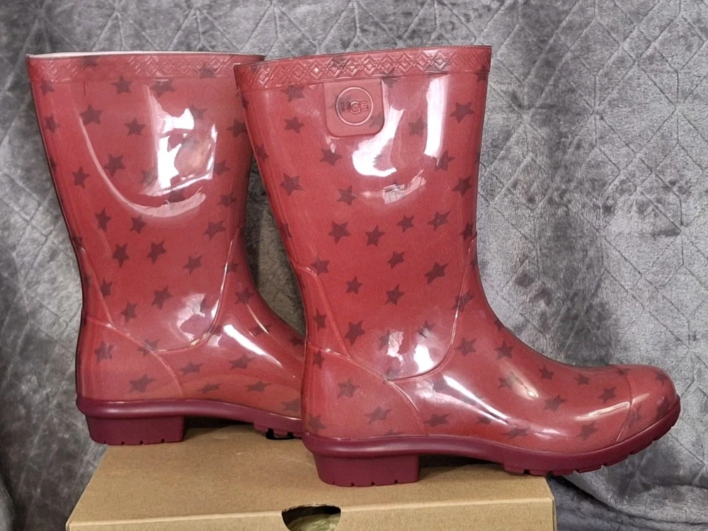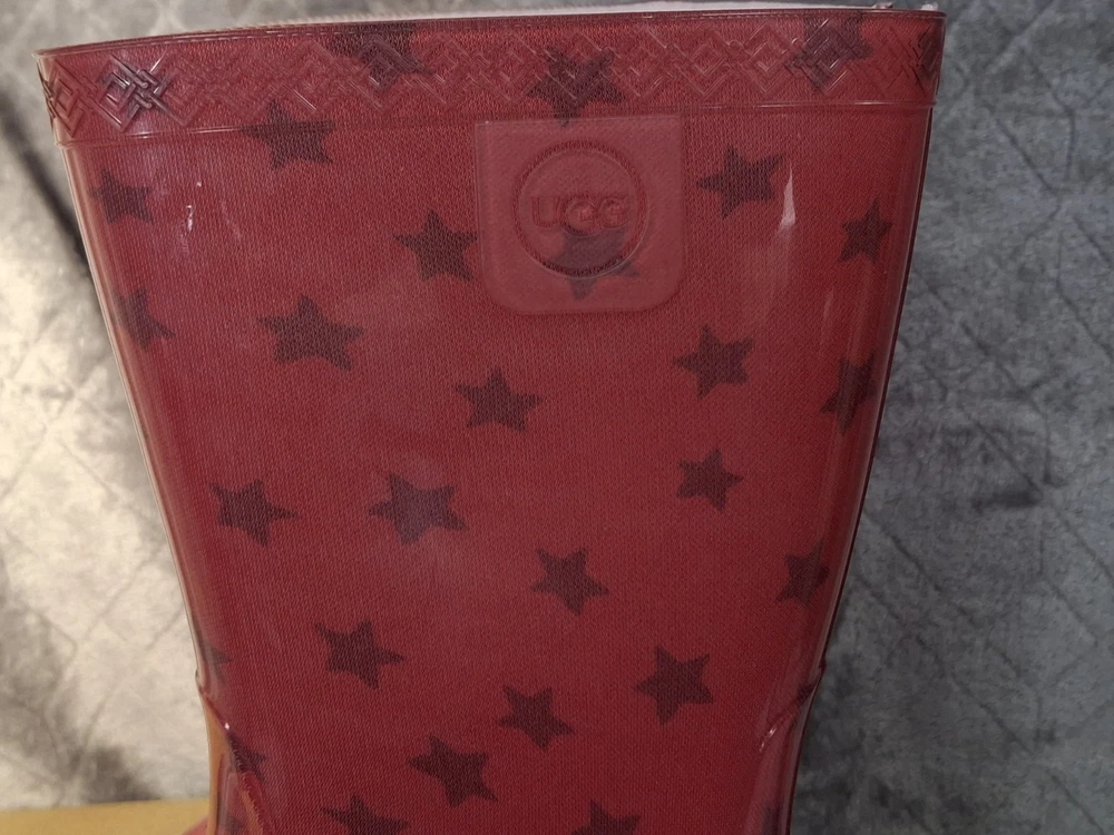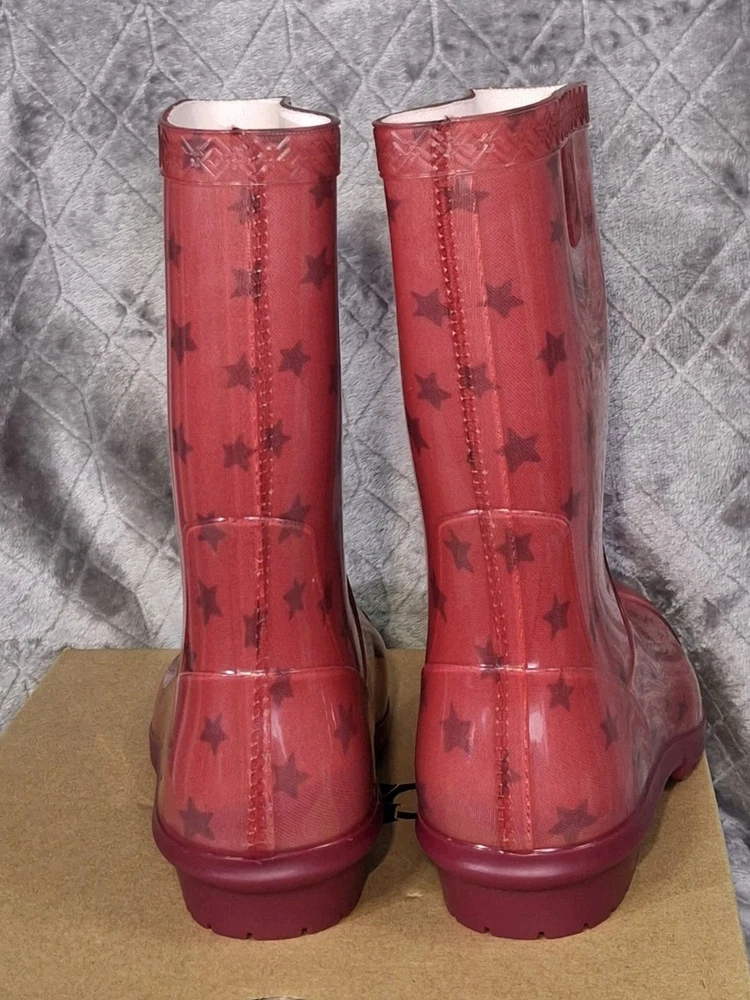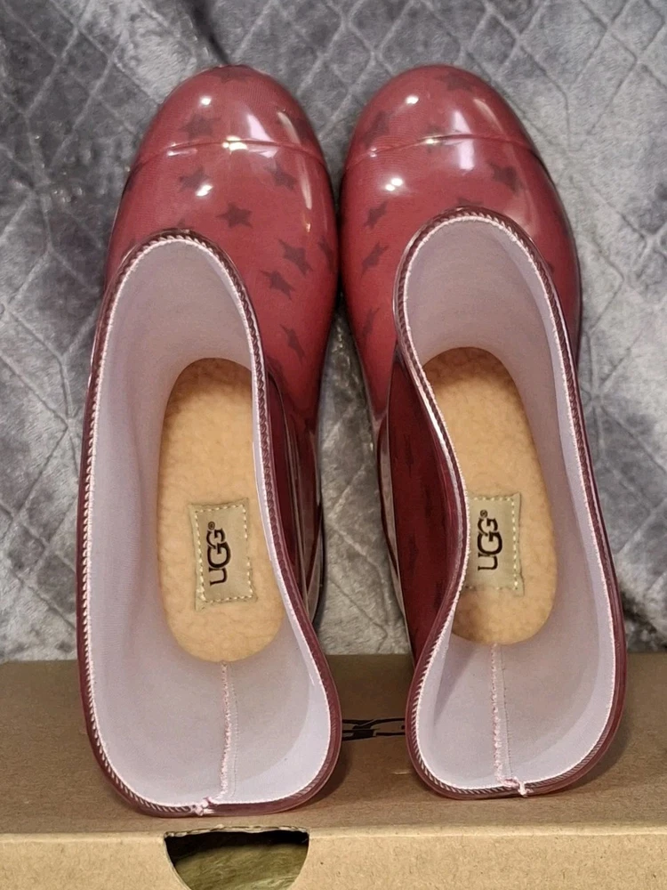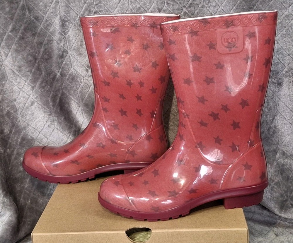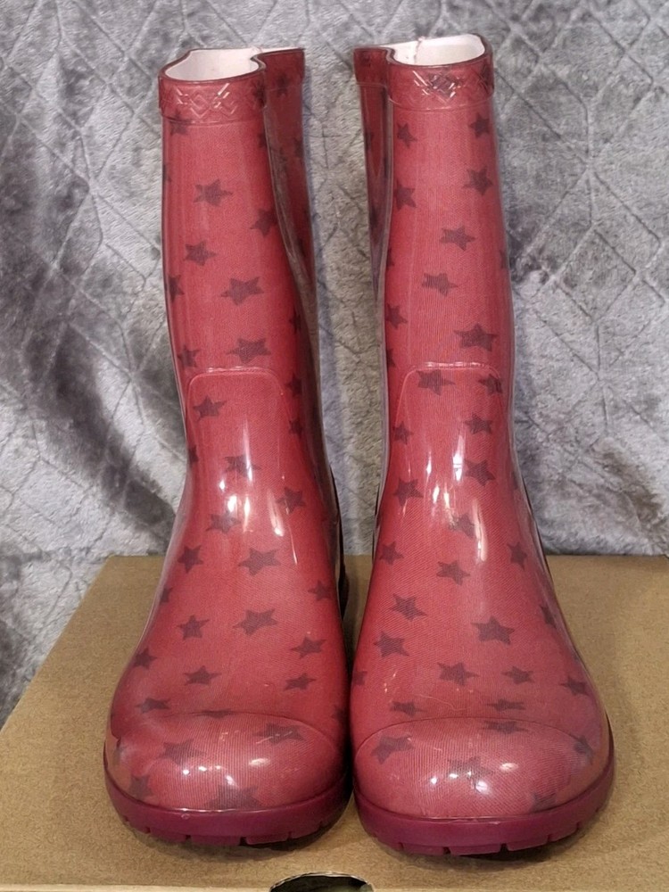 Rubber Childrens Waterproof Boot UGG Rain Boots Raana Pink Stars USA Size 1 Youth New in box Box has the word "new" wrote on it Please view all photos zooming in on them as they are part of the description for you to judge condition. Box has some wear