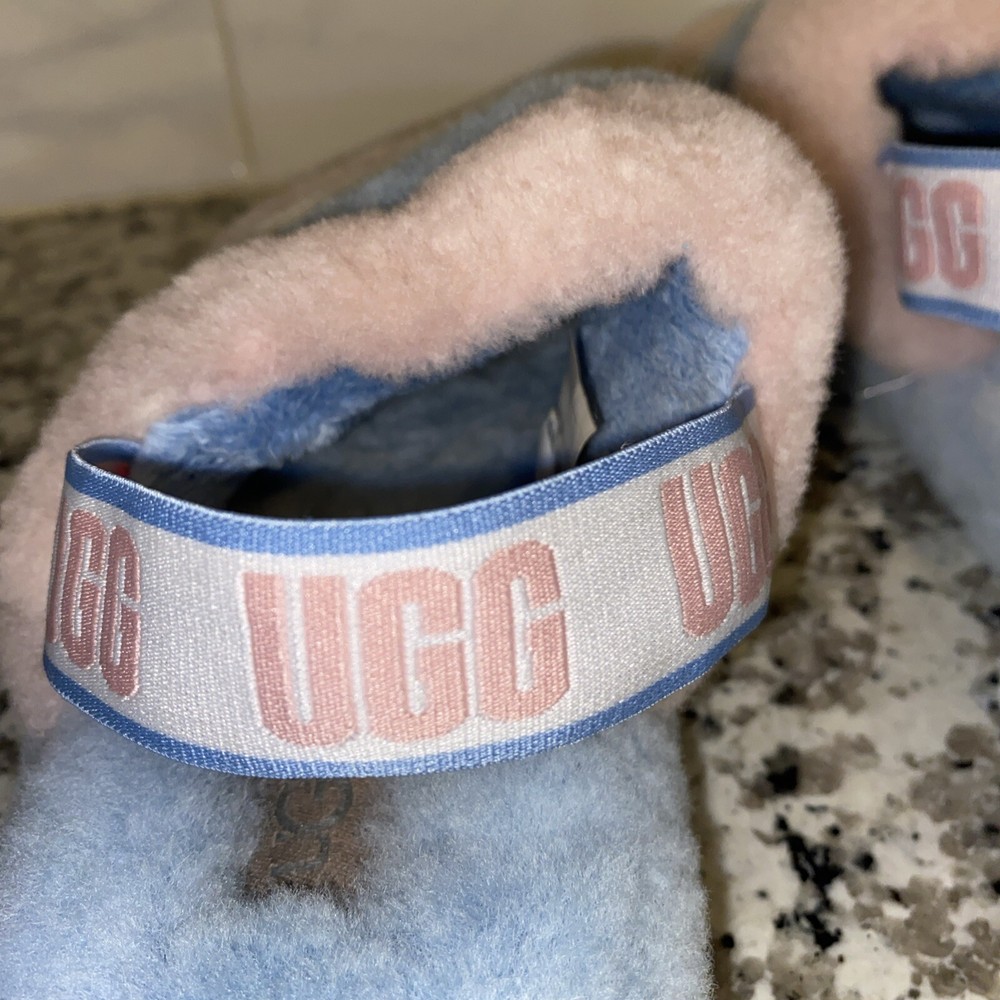 This UGG Rainbow Fluff Yeah slide sandal in multi-color is perfect for your little girl's comfort and style. Made with shearling fur upper material and lining, the sandal provides a soft and cozy feel. The rainbow design adds a fun touch to any outfit, while the slide style makes it easy to wear. The sandal is available in kids' size 1 and is part of the UGG Comfort Slide product line. It features a durable construction and is a great addition to any young girl's shoe collection.
