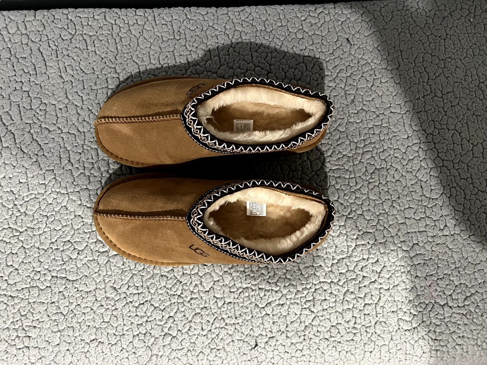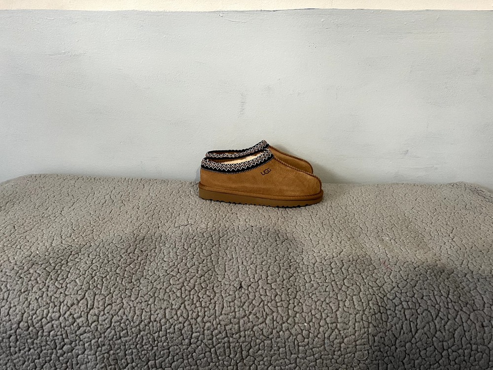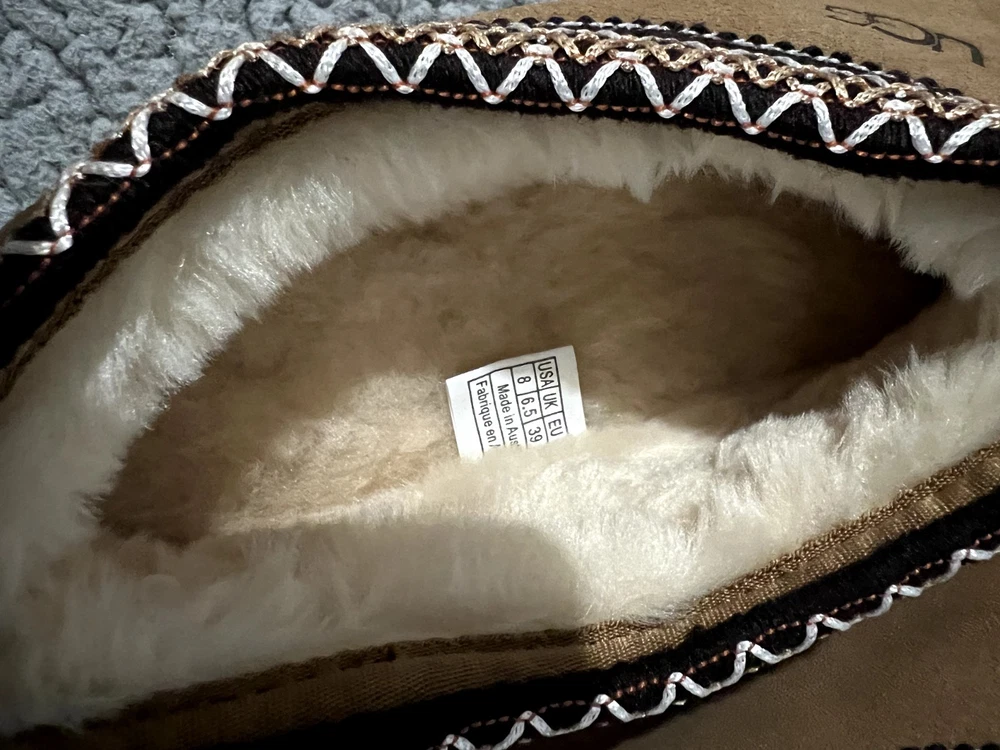 UPC: 0737872992873 Brand: UGG Vintage: No EU Shoe Size: 40.5 Style: Slip-On Outsole Material: Rubber Customized: No US Shoe Size: 8 gtin13: 0737872992873 Features: Comfort Type: Slipper Occasion: Casual Closure: Slip On Department: Women Upper Material: Suede Color: Brown UK Shoe Size: 7 Lining Material: Sheepskin Season: Fall, Spring, Winter Theme: Australia Fabric Type: Shearling Personalize: No Handmade: No Model: UGG Australia Tasman Pattern: Solid Insole Material: Wool Product Line: Ugg Classic Toe Shape: Round Toe