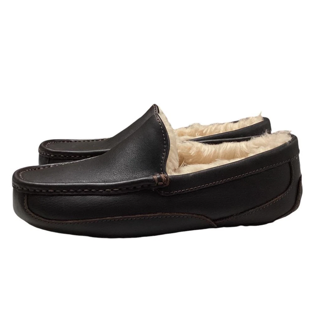 UGG Slippers Moccasins Shoes Mens 7 EEE Brown Ascot Sheepskin Leather NEW Style Number: 5379W Footbed width: Medium Measurements from Footbed: Length(toe/heel)-10.25" Width at ball-3.38" Heel Height-0.25" Measure the insole of your favorite clog slippers for size comparison. Full-grain leather upper 17mm UGGplush™ 80% upcycled wool, 20% TENCEL™ Lyocell lining or 17mm UGGplush™ 60% upcycled wool, 40% TENCEL™ Lyocell lining 17mm UGGplush™ 80% upcycled wool, 20% TENCEL™ Lyocell sockliner or 17mm UGGplush™ 60% upcycled wool, 40% TENCEL™ Lyocell sockliner Foam footbed Rubber or TPE The UGG® logo, heat-embossed Condition: New with tag First quality with no issues Original box is unavailable. Be sure to check out the store and remember, we combine shipping on multiple purchases. UGG Slippers Moccasins Shoes Mens 7 EEE Brown Ascot Sheepskin Leather NEW Style Number: 5379W Footbed width: Medium Measurements from Footbed: Length(toe/heel)-10.25" Width at ball-3.38" Heel Height-0.25" Measure the insole of your favorite clog slippers for size comparison. Full-grain leather upper 17mm UGGplush™ 80% upcycled wool, 20% TENCEL™ Lyocell lining or 17mm UGGplush™ 60% upcycled wool, 40% TENCEL™ Lyocell lining 17mm UGGplush™ 80% upcycled wool, 20% TENCEL™ Lyocell sockliner or 17mm UGGplush™ 60% upcycled wool, 40% TENCEL™ Lyocell sockliner Foam footbed Rubber or TPE The UGG® logo, heat-embossed Condition: New with tag First quality with no issues Original box is unavailable. Be sure to check out the store and remember, we combine shipping on multiple purchases.