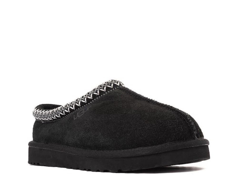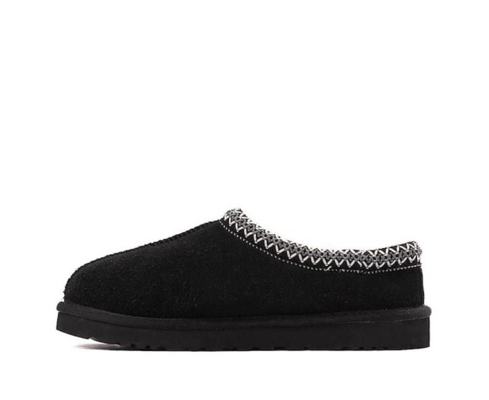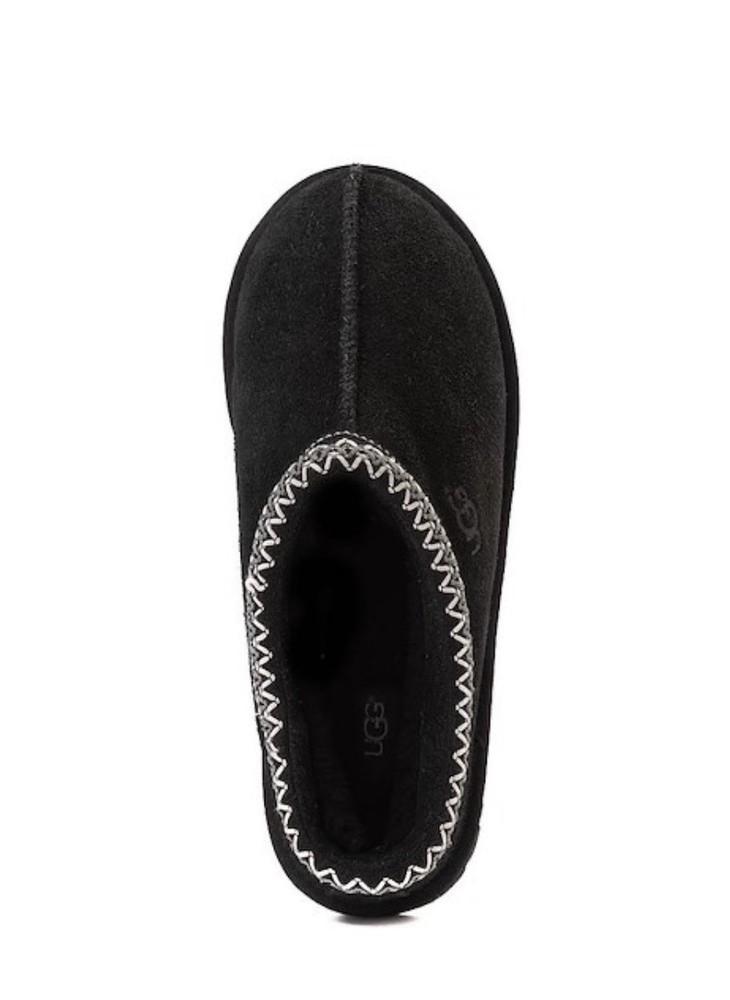 UGG Tasman Black Women's Slip-On Suede Slippers Shearling Lined Embroidered