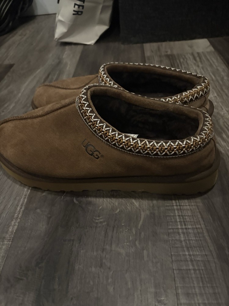 The UGG Tasman Slipper in size 12 for men is a stylish and comfortable option for casual wear during the winter, fall, and spring seasons. Made with brown suede and featuring a slip-on closure, these slippers are perfect for lounging around the house or running quick errands. The shearling fabric lining provides warmth and coziness, making them a great choice for practical yet fashionable footwear. The authentic UGG brand ensures high quality and durability in these classic slipper style shoes.