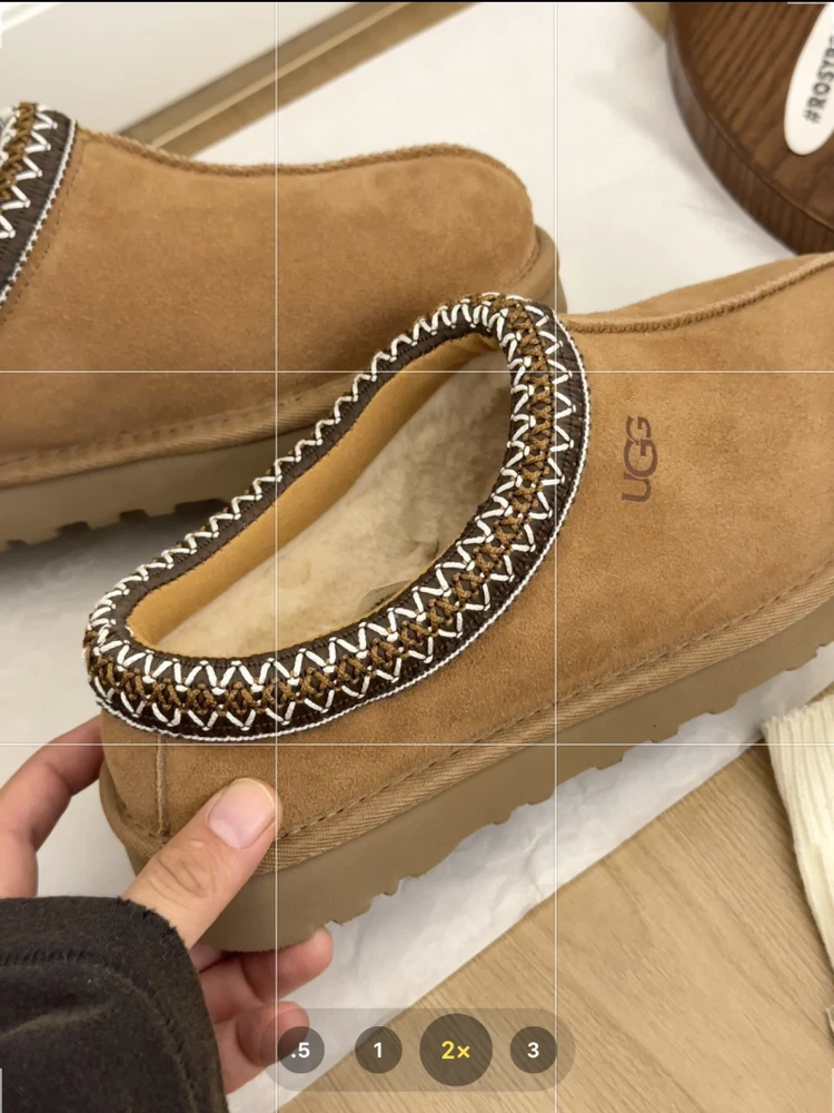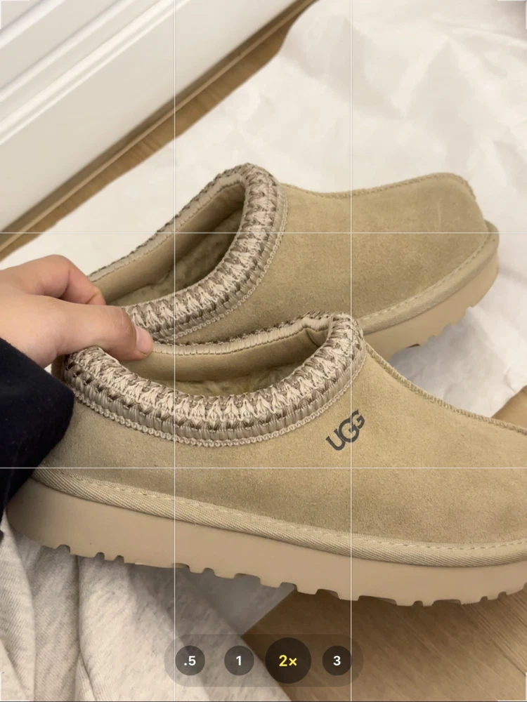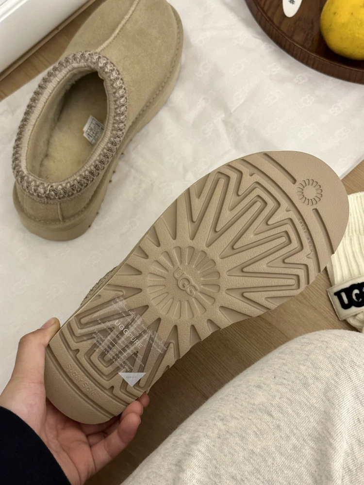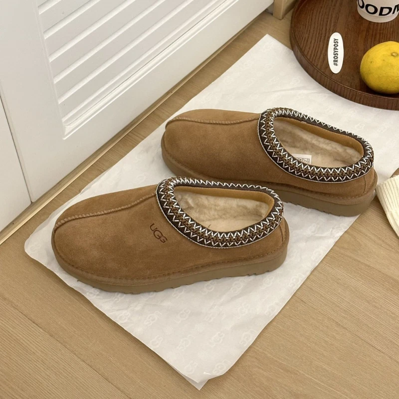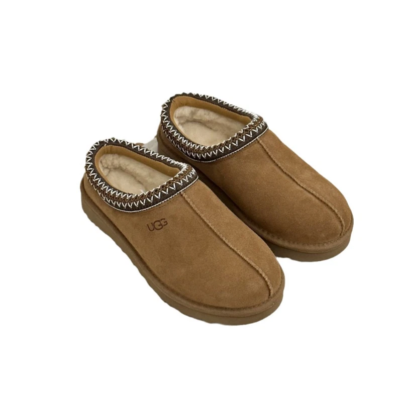 Suede upper, sheepskin and wool lining and insole, UGG braid trim A slipper for all occasions, our best-selling Tasman features the same light, durable outsole as our Classic boot, so you can wear it both indoors and out. Lined with plush natural wool, it’s crafted from soft suede with an embroidered braid and easy slip-on silhouette. Pair with boyfriend jeans and a knit sweater.