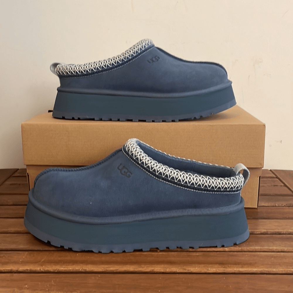 Department: Women Style: Platform Theme: USA EU Shoe Size: 38 Upper Material: Suede Type: Slipper US Shoe Size: 7 Color: Blue Brand: UGG Exterior Color: Blue UK Shoe Size: 5 Country of Origin: United States Model: UGG Tazz