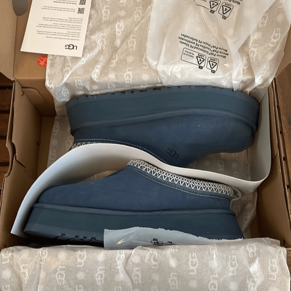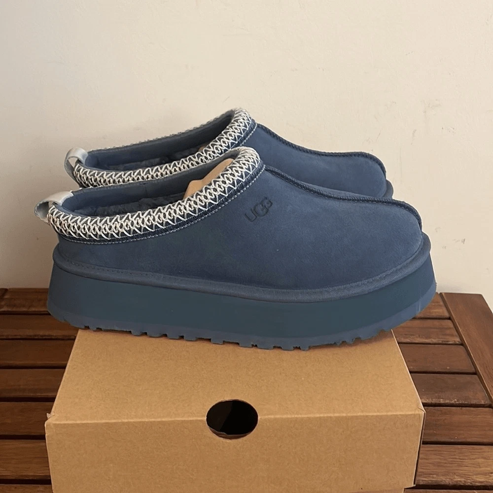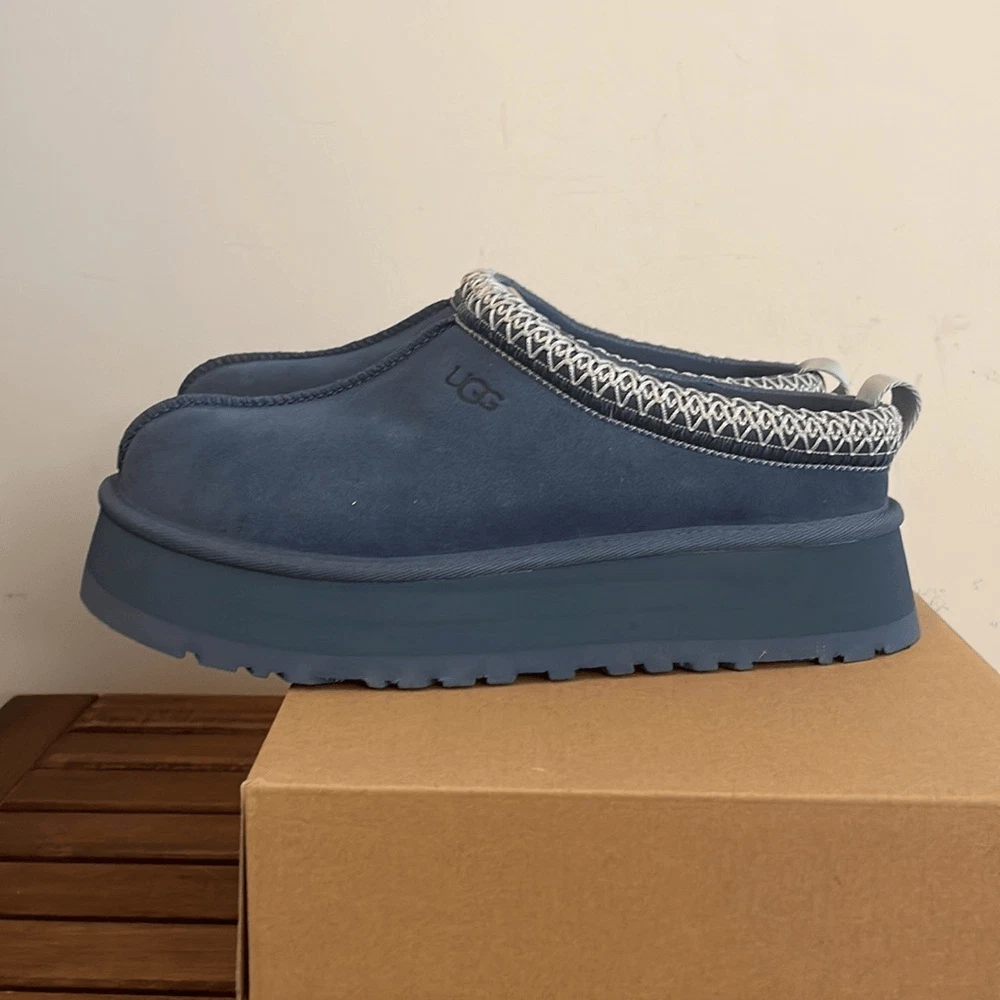 Brand new UGG Tazz Platform Slippers Size women 7 Color: Desert Blue This model is sold out online! *************** Please take a close look of all pics and video, you will get the exact pair of shoes displayed in pics. All sales are final and I don’t accept return! Thank you!