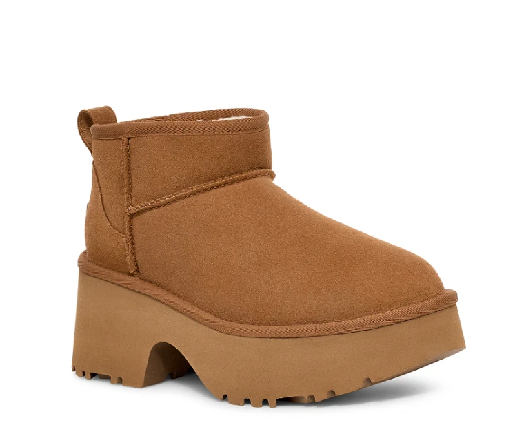 product description Designed with suede upper, UGGplush lining, and a bold cropped shaft. This Classic Ultra Mini gets a bold new update with a chunky notched platform and a 3" heel. Suede upper Rear pull tab Foam footbed Sugarcane EVA outsole Textile binding made from 100% recycled polyester fibers 2.75" platform height The UGG logo, embossed suede heel label 26907542 UGG Size Chart Women's Shoe Size Chart U.S. & Canada United Kingdom Europe Heel-Toe Measurements (in) Heel-Toe Measurements (cm) 4 2 35 8.2 20.8 4.5 2.5 35 8.3 21.3 5 3 35-36 8.5 21.6 5.5 3.5 36 8.8 22.2 6 4 36-37 8.9 22.5 6.5 4.5 37 9.1 23 7 5 37-38 9.3 23.5 7.5 5.5 38 9.4 23.8 8 6 38-39 9.5 24.1 8.5 6.5 39 9.7 24.6 9 7 39-40 9.9 25.1 9.5 7.5 40 10 25.4 10 8 40-41 10.2 25.9 10.5 8.5 41 10.3 26.2 11 9 41-42 10.5 26.7 11.5 9.5 42 10.7 27.1 12 10 42-43 10.9 27.6