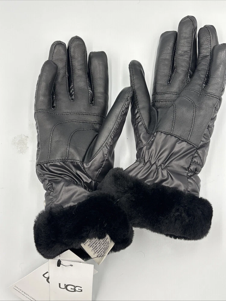 UGG women’s quilted all weather gloves in black, size Small/Medium. These gloves are New With Tags (NWT) and include the original retail tag with an MSRP of $85. Designed for cold-weather comfort, featuring a stylish quilted exterior and a soft fur cuff for added warmth and luxury. Perfect for everyday winter wear, outdoor activities, or as a gift. Please review photos for exact condition and details. Condition New With Tags (NWT) Specifications Brand: UGG Type: All Weather Gloves Size: Women’s S/M Color: Black Style: Quilted Gloves with Fur Cuff Model Number: 17414 MSRP: $85 (shown on tag) Compatibility Not applicable Features Quilted design for style and warmth Soft fur cuff for added comfort All weather construction for winter use Brand new with original tags attached Shipping Ships within 2 business days Notes New with tags, unused MSRP $85 shown on tag Great for cold weather or gifting See photos for exact condition and details