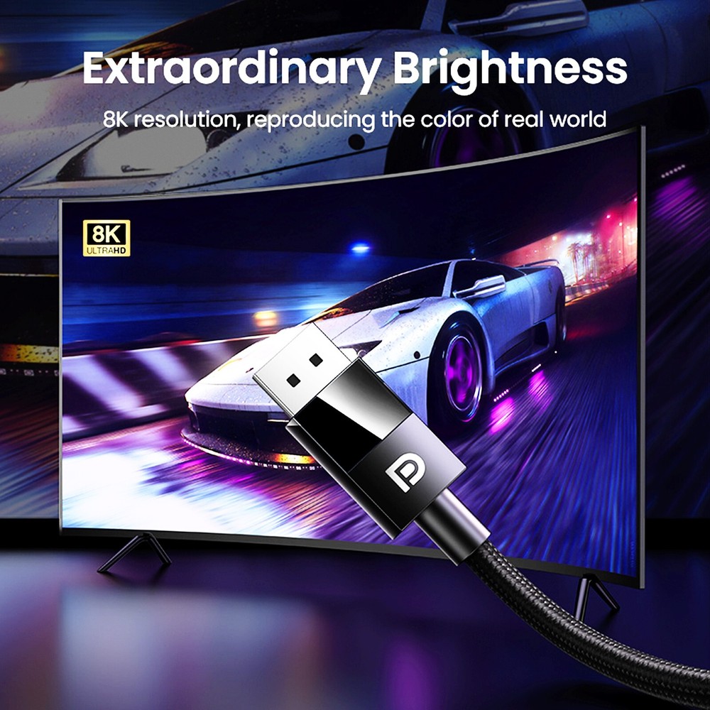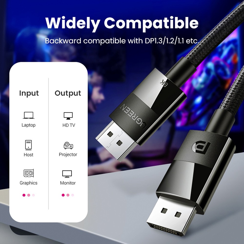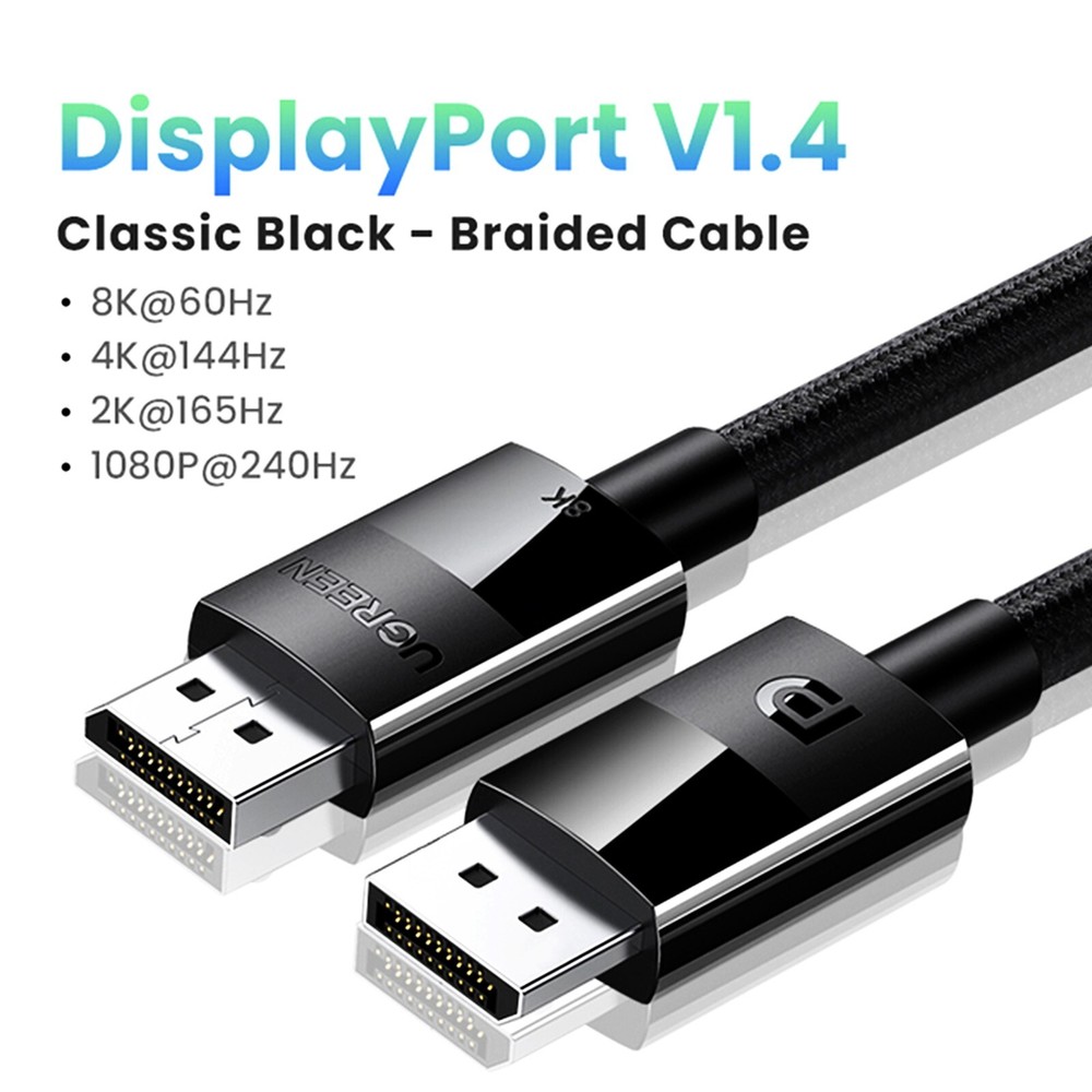 ✅ UGREEN DisplayPort 1.4 Cable – 8K@60Hz | 4K@144Hz | 32.4Gbps Bandwidth Upgrade your setup with the original UGREEN DP 1.4 cable – engineered for flawless video output at up to 8K resolution with 32.4Gbps bandwidth . Ideal for gaming, professional editing, and high-end displays. 🛒 Visit Our eBay Store – EbeyTechMart 📏 Length Options 1m – Best for close-range desktop connections 1.5m – Versatile for slightly extended setups 2m – Great for wall-mounted monitors and flexible routing 🔧 Specifications Brand: UGREEN Model: DP141 Interface: DisplayPort 1.4 (Male to Male) Length Options: 1m / 1.5m / 2m Transfer Speed: Up to 32.4Gbps Compatibility: PC, GPU, Monitor, TV, Projector Version: DisplayPort 1.4, backward compatible with DP1.3 / 1.2 / 1.1 Supported Resolutions: 8K@60Hz, 4K@144Hz, 2K@165Hz, 1080p@240Hz Audio Support: 32-bit / 1536kHz High-Definition Sound HDR: Supports Dynamic HDR for enhanced color depth Advanced Features: DSC (Display Stream Compression), FEC (Forward Error Correction) Gaming Ready: Suitable for games like PUBG, Dota and more Ideal Usage: Perfect for high-refresh rate gaming monitors and HD TVs 🎯 Use Cases 🎮 Gamers – Ultra-smooth high FPS gameplay 🎨 Designers – HDR support for rich color accuracy 🏢 Office – Reliable signal for business displays ✅ Why Buy From Us? 💯 100% genuine UGREEN products – no clones or fakes 🛡️ Brand new and sealed – shipped from the UK 💬 Fast replies & trusted service – we’re here for your questions 🚚 Delivery Main: Royal Mail Tracked 48 (included) Express: Royal Mail 24 (paid upgrade) ✅ Tracked delivery gives peace of mind and faster resolution in case of delays. 📸 Product Photo: