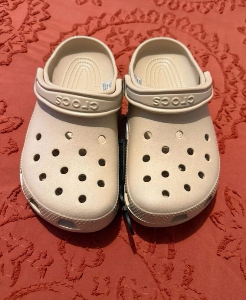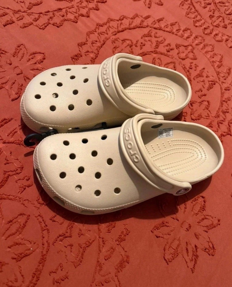 UK SIZE : 5 Colour : Beige UK Crocs Classic Sandal Clogs Lightweight Beach Slip Shoes Slipper Size Hot Sell -Slip into your favourite clog and enjoy a custom fit, water-friendly design and ventilated forefoot for breathability. -The croslite footbed moulds to your foot for a custom fit with excellent arch support. -Crocs Classic, the perfect shoe for beach or boat. -Ventilation ports add breathability and help water and debris drain away. -Fully moulded Croslite material for signature Crocs comfort. -Heel strap offers a secure fit. -Easy to clean, and quick to dry. -Lightweight, non-marking soles. Features: Outsole material: PVC Upper material: EVA Colour: Classic White Heel height: 2cm Package Included: 1 Pair of Crocs Classic Shoe Note: 1. Please allow a slight dimension difference due to different manual measurements. 2. Due to the light and screen setting difference, the item's color may be slightly different from the pictures. 3. Wish you a wonderful on-line shopping!