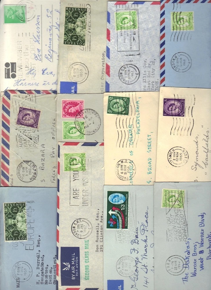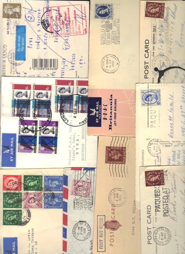 U.K. G.B. 1950-60's COLLECTION OF 31 COMMERCIAL COVERS & CARDS INCLUDING FEW FDCS WITH SLOGAN CANCELS & OTHER MARKINGS SEVERAL PAQUEBOT RMS QUEEN ELIZABETH SEE SCANS VISIT MY EBAY STORE: Filatco Stamps INTERNATIONAL BUYERS PLEASE NOTE: EBAY AND PAYPAL REQUIRE REGISTRATION FOR TRACKING INTERNATIONAL SHIPMENTS. THE US POST OFFICE CHARGES $11.50 FOR REGISTRATION BY BIDDING ON THIS ITEM YOU AGREE TO PAY THE REGISTRATION FEE OF $11.50 IF THE VALUE IS $50.00 OR MORE Feel free to ask if you have any questions. PAYMENT WITHIN 7 DAYS IS APPRECIATED . SHIPPING TO DOMESTIC BUYERS: EXCEPT FOR LARGE ITEMS ALL SHIPMENTS ARE INVOICED $1.50 FLAT FEE SENT USPS FIRST CLASS. ITEMS OF A VALUE OVER $50.00 WILL HAVE INSURANCE ADDED TO THE INVOICE. SHIPPING TO INTERNATIONAL BUYERS : EXCEPT FOR LARGE ITEMS ALL SHIPMENTS ARE INVOICED A FLAT FEE OF $2.50. ITEMS OF VALUE OF $ 50.00 OR MORE FOR CERTAIN COUNTRIES BIDDERS MUST CONSIDER PAYING REGISTRATION FEES BEFORE BIDDING . US REGISTRATION FEES ARE $11.50 + 2.50 FOR POSTAGE. PLEASE CONTACT ME AND MENTION THE COUNTRY IF YOU HAVE ANY QUESTIONS ABOUT INVOICE AND SHIPPING COSTS. FEEDBACK : I APPRECIATE YOUR BUSINESS AND MY TOP CONCERN IS TO MAKE SURE YOU ARE 100% PLEASED WITH ANY ITEM YOU PURCHASE. IF YOU HAVE A CONCERN OR A PROBLEM WITH INVOICE, SHIPPING OR ANY ITEM YOU RECEIVED PLEASE CONTACT ME FIRST BEFORE YOU LEAVE ANY FEEDBACK. I GUARANTEE YOU WILL BE 100% SATISFIED WITH THE TRANSACTION. I WILL CERTAINLY LEAVE YOU A POSITIVE FEEDBACK AS SOON AS I RECEIVE YOURS. Powered by eBay Turbo Lister The free listing tool. List your items fast and easy and manage your active items.