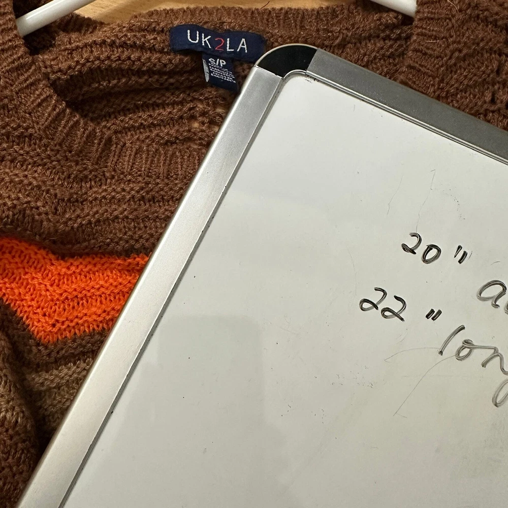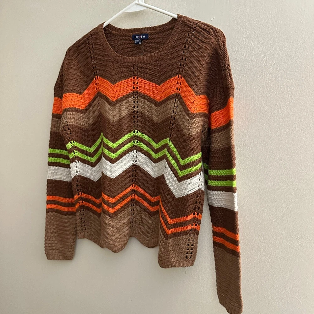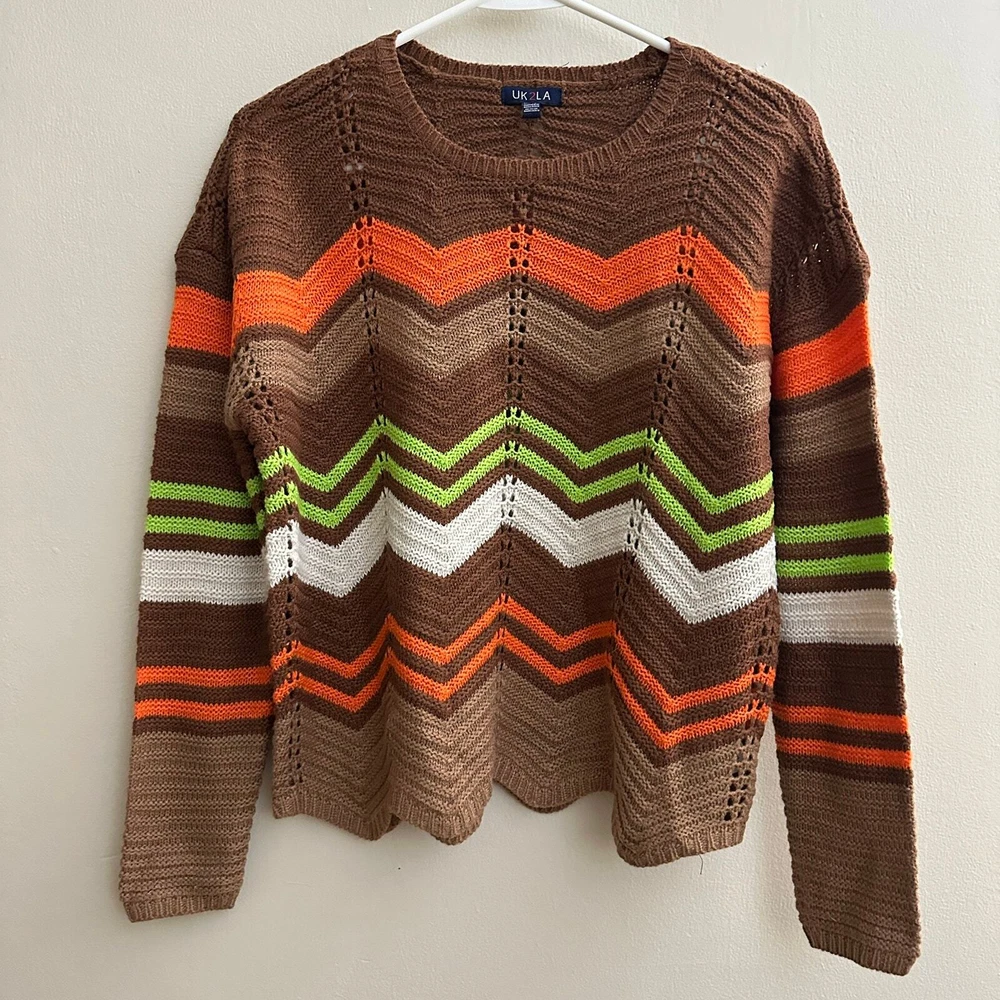 Sleeve Length: Long Sleeve Knit Style: Open-Knit Accents: none Department: Women Type: Sweater Sleeve Type: none Color: Brown Theme: Bohemian, Preppy, Retro, Classic Features: Lightweight, Breathable Character Family: none Personalize: No Style: Pullover Vintage: No Character: none Season: Fall, Spring, Winter Occasion: Casual, Workwear Size Type: Regular Fit: Regular Garment Care: Machine Washable Size: S Brand: UK2LA Country/Region of Manufacture: Bangladesh Pattern: Striped Neckline: Crew Neck Fabric Type: Knit Material: Acrylic