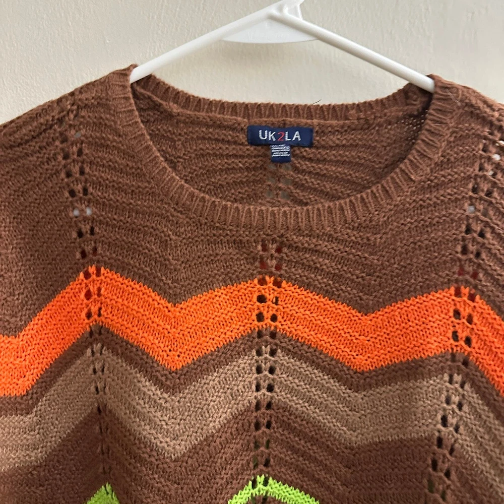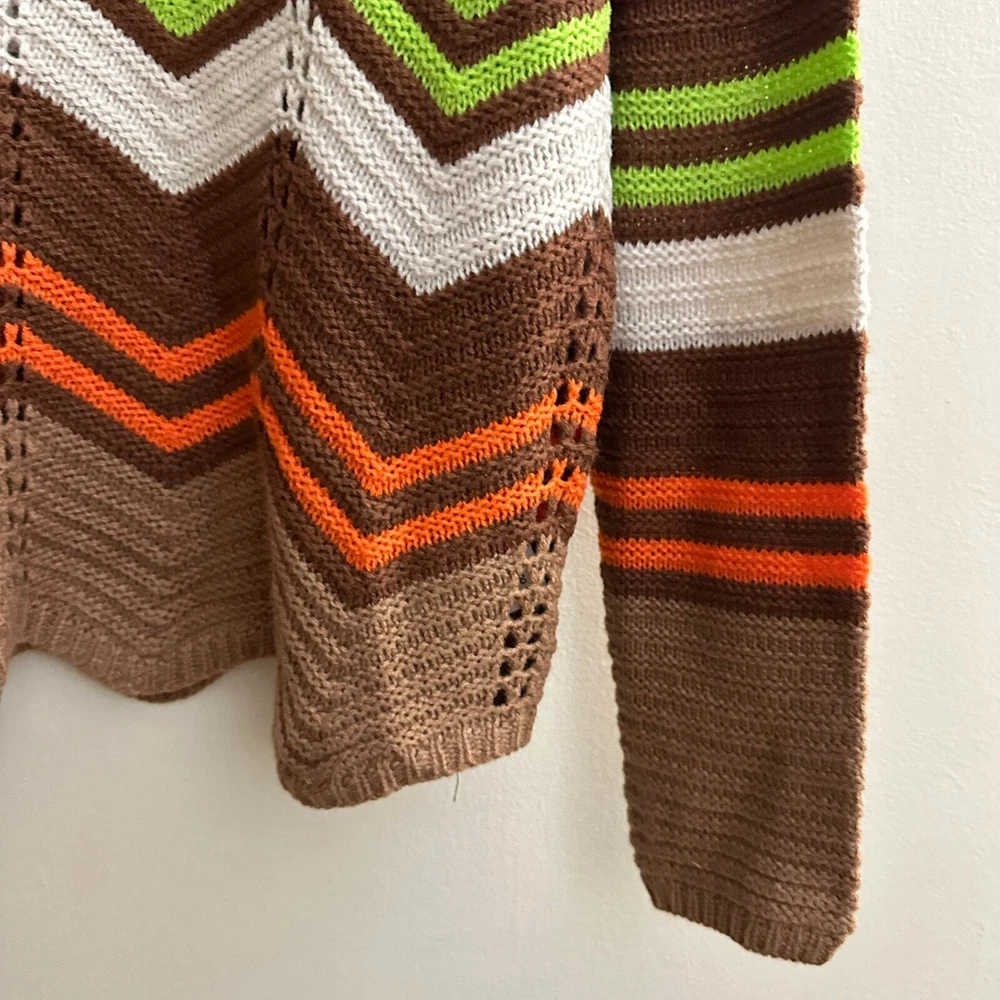 UK2LA Open Knit Chevron Stripe Sweater Preppy Academia Lightweight SMALL Retro
