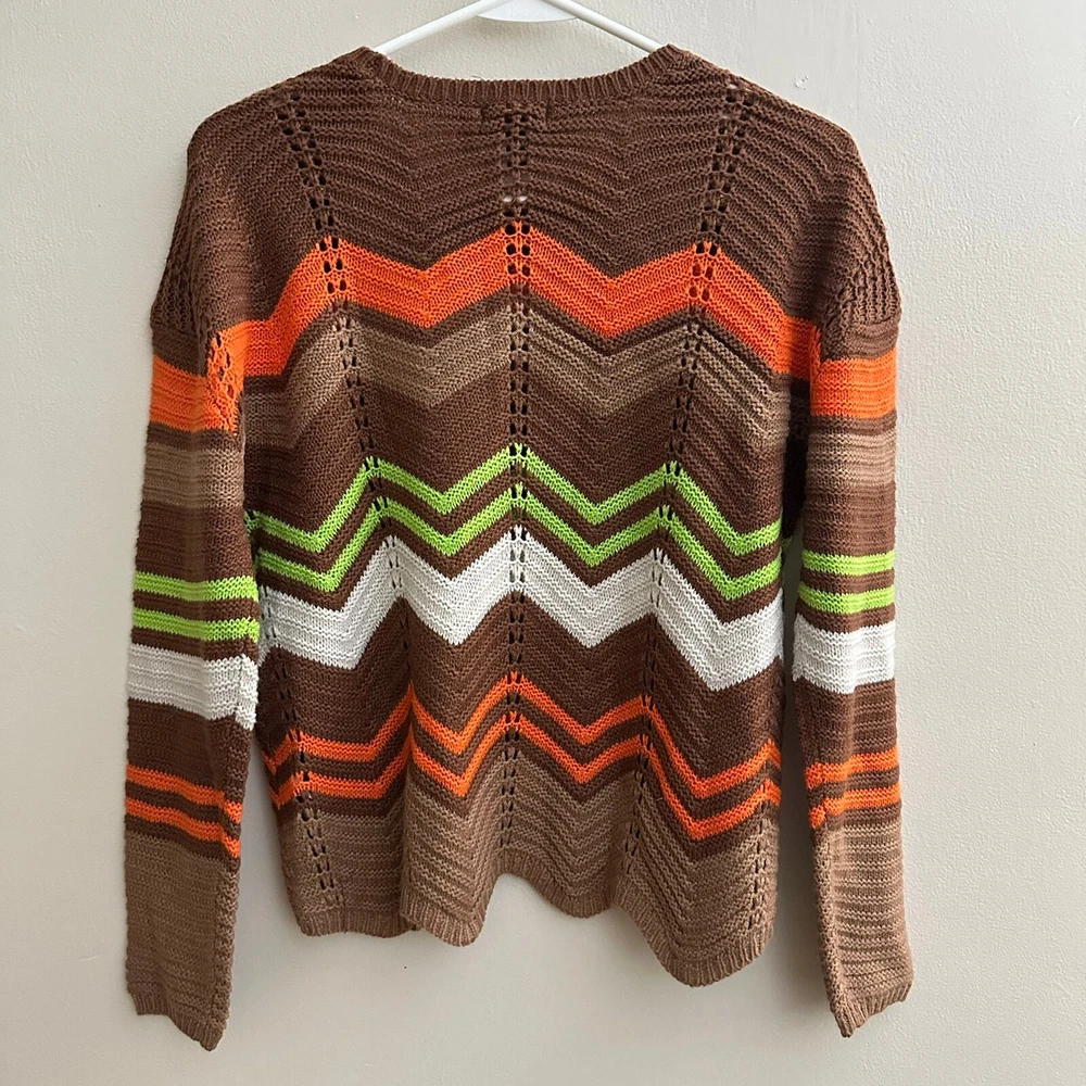 UK2LA Open Knit Chevron Stripe Sweater Preppy Academia Lightweight SMALL Retro 70s Inspired Size: SMALL Approx. measurements: 20" across (pit to pit), 22" long (shoulder to hem) Condition: Pre-owned excellent. Pre-loved and in gently used condition. Light wear. no stains, rips, or holes. - see all pics for any wear/condition Actual colors may vary. We do our best to ensure that our photos are as true to color as possible. However, due to photographic lighting sources, inconsistencies of various monitors settings, we cannot guarantee that the color you see accurately portrays the true color of the product. preppy, classic, casual, retro, 70s, open knit, open crochet, academia, dark academia, neutral aesthetic,