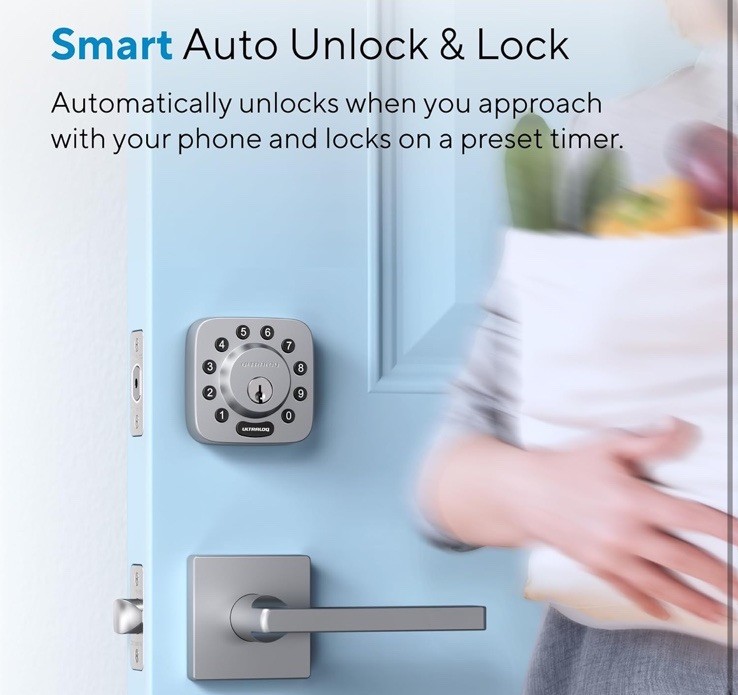 Brand ULTRALOQ Special Feature Smartphone Control From Anywhere, Auto Lock and Auto Unlock, Glove-friendly Fingerprint-resistant Keypad, ANSI Grade 1 Certified, Works with Alexa, Google, SmartThings, IFTTT, No Drilling RequiredSmartphone Control From Anywhere, Auto Lock and Auto Unlock, Glove-friendly Fingerprint-resistant Keypad,… See more Lock Type Deadbolt, Combination Lock, Keypad Item dimensions L x W x H 2.95 x 2.95 x 0.98 inches Material Zinc Recommended Uses For Product Home/Office/Airbnb/Apartment/Rental 6-in-1 Keyless Entry Door Lock: Anti-peep Keypad + Smartphone App + Auto Unlock + Shake to Open + Compatible with Apple Watch + Voice control with Alexa and Google Assistant + Works with SmartThings and IFTTT + Mechanical Key. APP Control & Share Ekeys from Anywhere: Smart locks enable you to lock, unlock, manage access rights, view access logs of who's entered and exactly when they did remotely using smartphone App and authorize family members, guests, or tenants to unlock doors using the app via Bluetooth or WiFi. Additionally, they allow for password setting and provide convenient access management. Connectivity: 2.4GHz WiFi only. Auto Lock and Auto Unlock: Smart Lock automatically locks on a preset timer and unlocks when you arrive at your door with your smartphone in your pocket. Utilize the "ULTRALOQ" button on your keyboard to "One Touch Lock". Low battery alert via app. Add random digits to protect your passcode from prying eyes. With the backlit keypad, entry your home easily even at night. Certified Highest Security and Durability: Meets ANSI Grade 1 Standard. Proven for up to 35 times strength of standard residential locks along with a 7 times longer lifespan. IP65 rated dust and weatherproof external Smart Lock built to withstand heat and cold. DIY Installation: ULTRALOQ Smart deadbolt fits on most US standard left-handed or right-handed doors. Replace your current deadbolt with just a screwdriver in 10 mins. Backed by Ultraloq, world’s leading smart lock brand with more than 1 million happy American users.