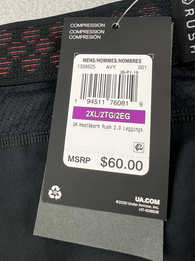 UNDER ARMOUR Men’s Rush Heatgear 2.0 Black Leggings Size 2X-Large New With Tags