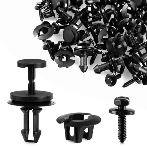20 Sets Silverado Bumper Clips Front Air Deflector Retainers Clips 15733971 15733970 with M6 1.0 X 25mm Head Sems Body Bolts Fits Chevy GMC Trucks Sierra Suburban Tahoe Yukon Escalade Avalanche Description : 20pcs Front bumper retainer clips replace OEM # 15733971, fits hole diameter 9mm / 0.35in, made of high-quality black nylon material, anti-wear, and anti-corrosion 20pcs Front air deflector grommet retainers replace OEM #15733970 C & K Trucks 1999-, Head Diameter: 28mm, Stem Length: 13mm 20pcs Head Sems Body Bolts M6-1.0 x 25mm, replaces OEM # 11503834, 20351035 , hex head sems, 17mm (21/32") washer O.D., 10mm hex, phosphate, class 9.8 Widely used as air deflector clip, bumper cover retainer, outer bracket clip, lower bracket retainer, bumper trim clips, bumper cover fastener, door interior trim panel bolt. fog light Screw, horn mount bolt