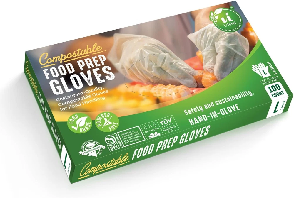 Store New Arrivals Add to Favorite View Feedback Contact UNNI Compostable Food Prep Gloves, Restaurant-Quality, for Food Handling, Powder-Free, 100 Count, Large, Earth Friendly Highest ASTM D6400, US BPI, CMA & Europe OK Compost Certified, San Francisco Description Age Range Description Adult Style Large Item Dimensions 10.98 x 6.34 x 0.98 inches Unit Count 100.00 Count Brand Name UNNI Brand UNNI Material compostable Model Number Gloves-L-100 Model Name Gloves-l-100 Hand Orientation Ambidextrous Material Type Free Powder Free Reusability Disposable Closure Type Pull On Water Resistance Level Waterproof Item Weight 4 ounces Special Features Eco Friendly Special Feature Eco Friendly Color Green Material Features Compostable, Biodegradable Is Waterproof True Recommended Uses For Product For Food Handling Size 100 Count (Pack of 1) 100 Count; Large = 4.25" / 10.8cm; Size Chart: Simply measure the width of your palm, straight across from just above your thumb Ideal for: Making sandwiches, Fresh salad prep, Food sample handout, Pre-portioning, Buffet serving, Catering service, Handling pastries, General cleaning tasks CERTIFIED COMPOSTABLE IN U.S. & EUROPE: Certified by the Biodegradable Products Institute (BPI) under US standard ASTM D6400. Certified OK Compost under European standard EN 13432 by Vinçotte and Tüv Austria. OK Compost certification guarantees 100% BIODEGRADABILITY IN COMPOSTING facilities. Compost Manufacturing Alliance (CMA) Approved: CMA verifies the compliance of UNNI compostable products with real-world composting standards through disintegration tests. HIGHEST BIOBASED CONTENT: UNNI Compostable Bags are made from plant starches and contain NO polyethylene. Bags are durable, nontoxic, easy to use and great for the environment. UNNI compostable bags are the ethical choice for a cleaner environment and an ECO-FRIENDLY future. Thank you taking care of our planet for FUTURE GENERATIONS by replacing plastic with our sustainably manufactured, compostable bags. Together, U ‘n’ I make Earth a better place. Product Description Denotes certification by TÜV Austria as 100% compostable in backyard and home composting units. OK Compost Home is one of the world’s only home composting certifications. US BPI Denotes certification by the BPI for use in commercial and municipal composting facilities, in compliance with U.S. standard ASTM D6400. At UNNI, we are passionate about making Earth a better place for everyone. A sustainable future begins with U 'n' I making smarter choices every day. When we come together in "Unni-ty" to give future generations a better world, anything is possible! We offer a wide range of 100% compostable products that meet the most stringent standards for biodegradability and environmental friendliness. Our compostable bags are made from plant materials and have received European OK Compost Home certification, so they are 100% compostable even in home composting units These bags have also been awarded US BPI certification under the ASTM #6400 standard, and can be composted in municipal and industrial facilities. ABOUT US We offer the best prices around on high quality products. Our E-store includes media such as books, movies, music and games while offering electronics, toys, sporting apparel, clothing, tools, general home, garden items and more. SHIPPING We are always working hard to ensure your package arrives as soon as possible. Please understand that some factors like weather, high postal traffic, and the performance of shipping companies are outside of our control. We offer free shipping to the lower 48 states and ship within 2 business days of payment, usually sooner. We do not accept P.O. Boxes. Please provide a physical address. RETURNS We offer a 30-Day Return Policy on items which you are not completely satisfied with. You have the option for a full-refund or an exchange of the item. No returns are available on items shipped outside of the USA. PAYMENT We accept PayPal. CONTACT US This page content is yet to come Please ad us to your favorite seller and visit again later Thank You CUSTOMER SATISFACTION We try our very best to make sure every customer is completely satisfied. If there's a problem, message us! We're happy to help.