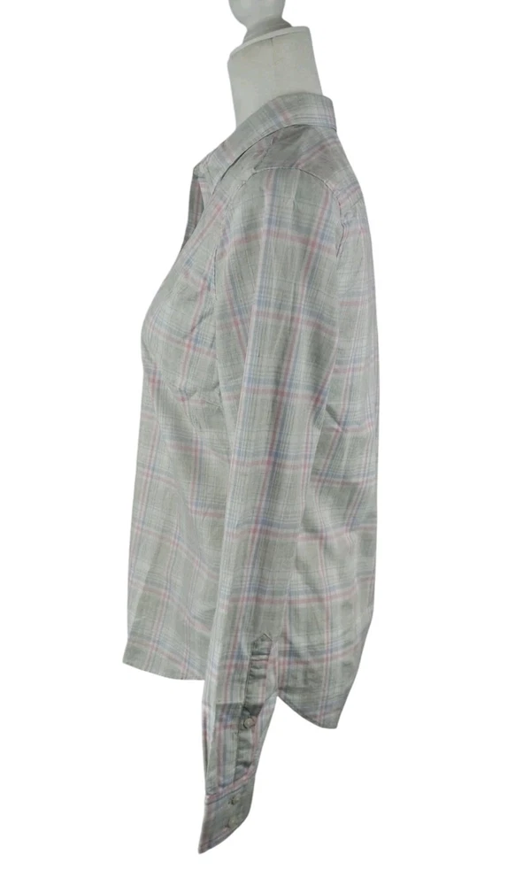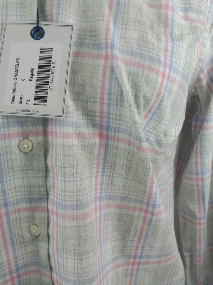UNTUCKIT Shirt Women 6 Chasseles Gray Pink Blue Plaid Button Up Top Long Sleeve. 100% Cotton. *Laying flat pit to pit 19" *Laying flat shoulder to hem 25" *All reasonable offers accepted Items shipped one business day or less! 100% Satisfaction Guaranteed!