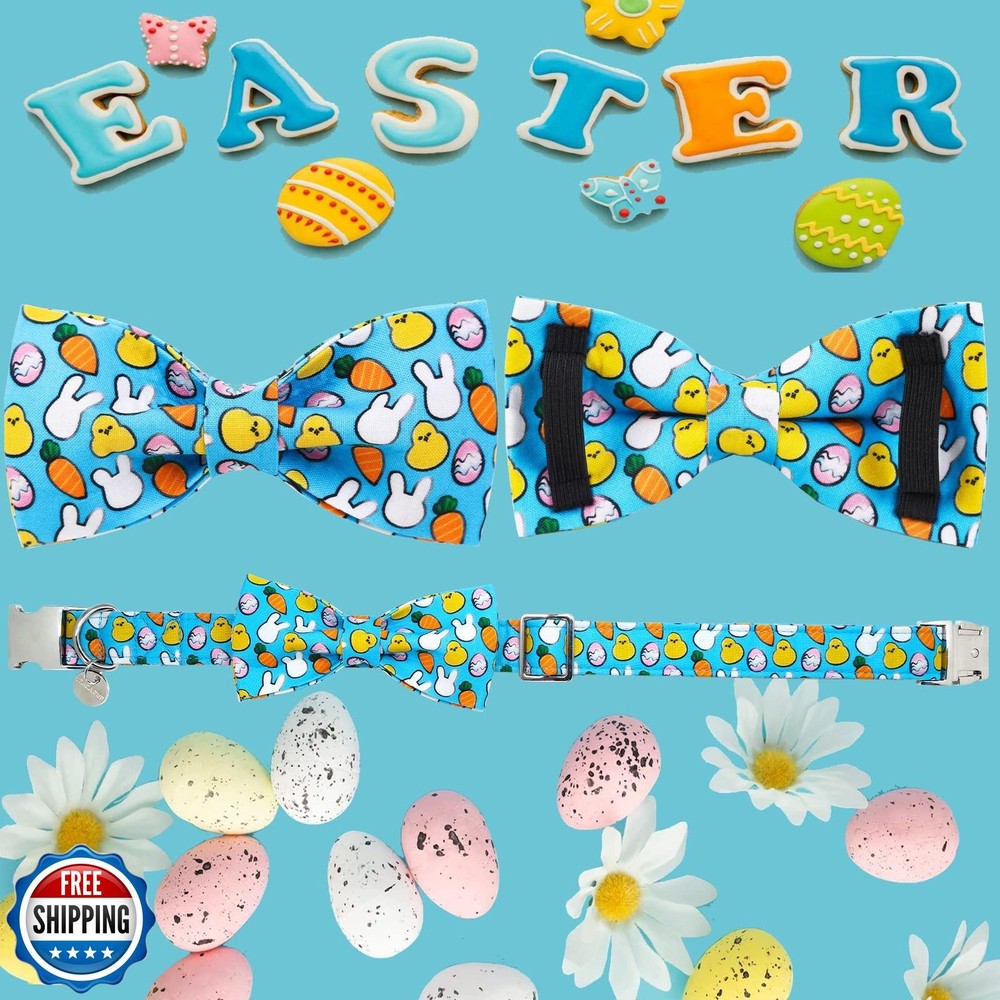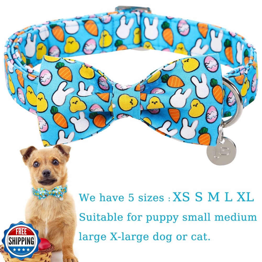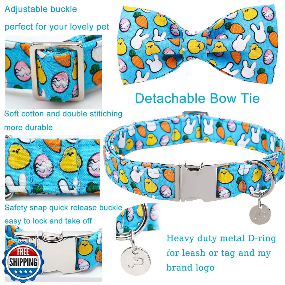 UP URARA PUP Easter Dog Collar with Bow Tie, Cotton Easter Bowtie Collar for Small Girl Boy Dog, Cute Carrot and Rabbit and Egg Pet Collar with Metal Buckle, Easter Gift Dog Collar, S Features ADJUSTABLE SIZE: UP URARA PUP Dog Collar-S=4/5"(2cm) x 10.63"~15.75"(27cm~40cm). We strongly recommend that you measure your pet’s neck to ensure buy the right pet collar according the size chart. EASTER BOW TIE COLLAR: Classic carrot & rabbit & egg collar is especially suitable for Easter Day. Easter dog collar better shows your dog’s charm. Easter bowtie is detachable and well-made with elastic loops that let you take the bow tie off and on with ease. HIGH QUALITY MATERIAL: Premium cotton fabric doesn’t harm your dog’s skin. It’s safe, soft, durable, thick. Sturdy metal buckle/clasp is easy take on and off. NOT cheap plastic. Metal D-ring for adding dog tags,leash and ID tag. UNIQUE CRAFTSMANSHIP DESIGN: Carrots & Rabbits craftsmanship collar suitable for Easter Day. Pretty collar is great gift for dressing up your dog. ATTENTION: Don't let your dog bite the collar and bow. You may not receive exactly the same pattern as the picture, because the fabric used to make the collar is cut randomly. If you have any questions, please feel free to contact me. I will be at your service 24 hours a day. Shipping Free & Fast Shipping: We offer free shipping to most of the USA with a normal delivery time of 3-7 days. However, due to the current situation, additional delivery time (up to 3 weeks) may be required for some items. Alternative Carriers: We may use alternative carriers (e.g., USPS, FedEx, UPS) to ensure your package arrives safely and on time. Due to the use of multiple carriers, we are unable to provide a tracking number automatically. Handling Time: Orders are processed and shipped within 1-2 business days of receiving cleared payment. Shipping Restrictions: Shipping to Alaska, Hawaii, Puerto Rico, Guam, and other US territories may incur shipping charges or delivery restrictions. Please contact us before ordering, or your order can be refunded/cancelled. State Restrictions: Certain items may not be shipped to California due to state regulations. Contact for Tracking Updates: If you require tracking updates or have any concerns about the delivery of your order, please feel free to contact us, and we will be happy to assist you. Return Policy 30-Day Hassle-Free Returns: If you are not completely satisfied with your purchase, you can return the item for free within 30 days of receiving it for a full refund or exchange. Easy Return Process: Contact us, and we will provide you with a prepaid return shipping label and detailed instructions. No Restocking Fee: There are no restocking fees for returns. However, the buyer is responsible for return shipping costs if the return is not due to a seller"s error. Refund Processing: Refunds will be processed within 1 business day of receiving the returned item in its original condition. Feedback Your feedback is extremely important to us. We strive to provide the best products and customer service possible. If you are satisfied with your purchase, please take a moment to leave us a positive review. If you have any concerns or issues with your order, please contact us before leaving negative feedback. We are committed to resolving any problems and ensuring your satisfaction. Contact Us If you have any questions or concerns, please feel free to reach out to our customer support team. You can contact us through the eBay messaging system. We are available Monday to Friday, 9:00 am to 5:00 pm EST, and we will do our best to respond to your inquiry within 24 hours. Thank you for supporting our small family business!