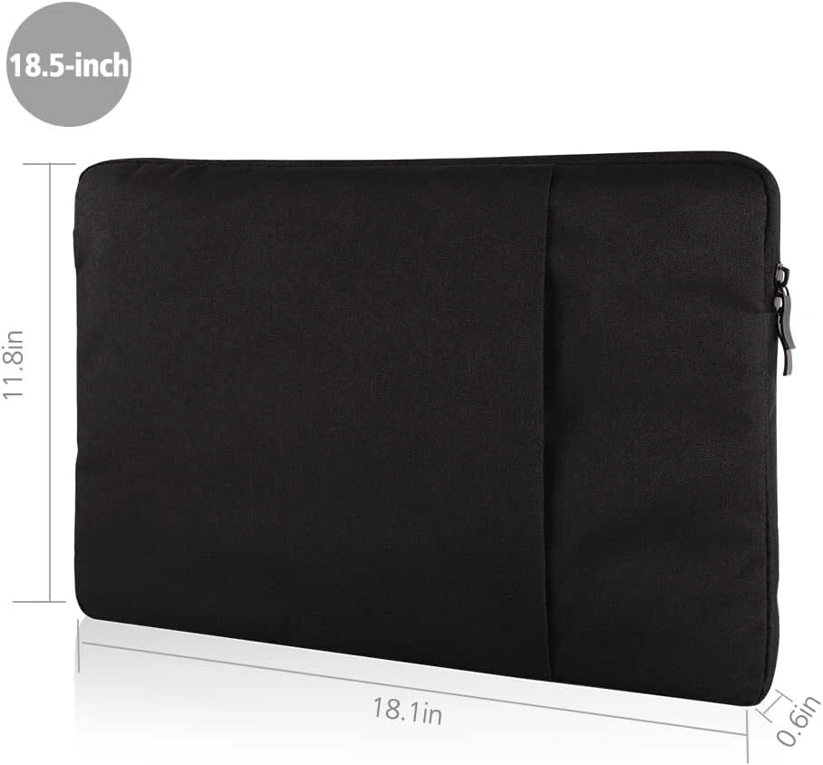 UPERFECT 18.5-inch Portable Monitor Case Polyester Laptop Sleeve 18.5", Black Product Details Package Dimensions: 17.83 x 12.01 x 1.42 inches Item Weight: 5.9 ounces Item model number: 156sleeve Special features: Travel Other display features: Personal Computer Form Factor: Case Color: Black Manufacturer: UPERFECT Brand: UPERFECT Compatible Devices: apple ipad Shell Type: Soft Wide Applicabilities: 18.5-inch laptop sleeve bag case is perfect for our UPERFECT 18.5'' monitor; please note that it can not fit a laptop over 18'' Light Weight: Classic simple laptop case designed to fit monitors under 18.5" and laptops under 18" Durable Material: A premium quality zipper thoroughly stress tested for maximum resistance and security to help keeping the valuables secure and safe Extra Pocket: Equipped with large external pocket made an extra capacitive, perfect for storing essentials such as mobile phones and charging leads, as well as accessories like power banks and USB memory sticks External Dimensions: 18.1x11.6x2.8 inches(L×W×H)