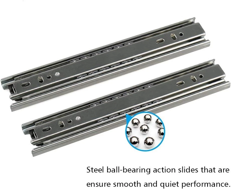 URBEST Drawer Slides 9 Inch Full Extension 3 Sections Ball 9Inch, Silver Product Details Mounting Type: Side Mount Drawer Type: Storage Manufacturer: URBEST Number of Items: 2 Part Number: L31 Item Weight: 12.3 ounces Product Dimensions: 9 x 0.5 x 1.5 inches Item model number: L31 Is Discontinued By Manufacturer: No Size: 9Inch Finish: Stainless Steel,Steel Shape: Rectangular Item Package Quantity: 1 Batteries Included?: No Batteries Required?: No Color: Silver Material: Stainless Steel Brand: URBEST Product Dimensions: 9.06"L x 1.54"W x 0.5"Th Finish Type: Stainless Steel,Steel Product Name : Ball Bearing Drawer Slides; Feature : 2 Pcs, 3-fold Smooth Telescopic Slide; Material : Cold-rolled Steel with Steel Ball Bearings Application: cabinets, desk pedestals and general storage drawers Notice: Installing screws are not included here. Package Include: 2 Pcs stainless steel drawer slide 3 sections