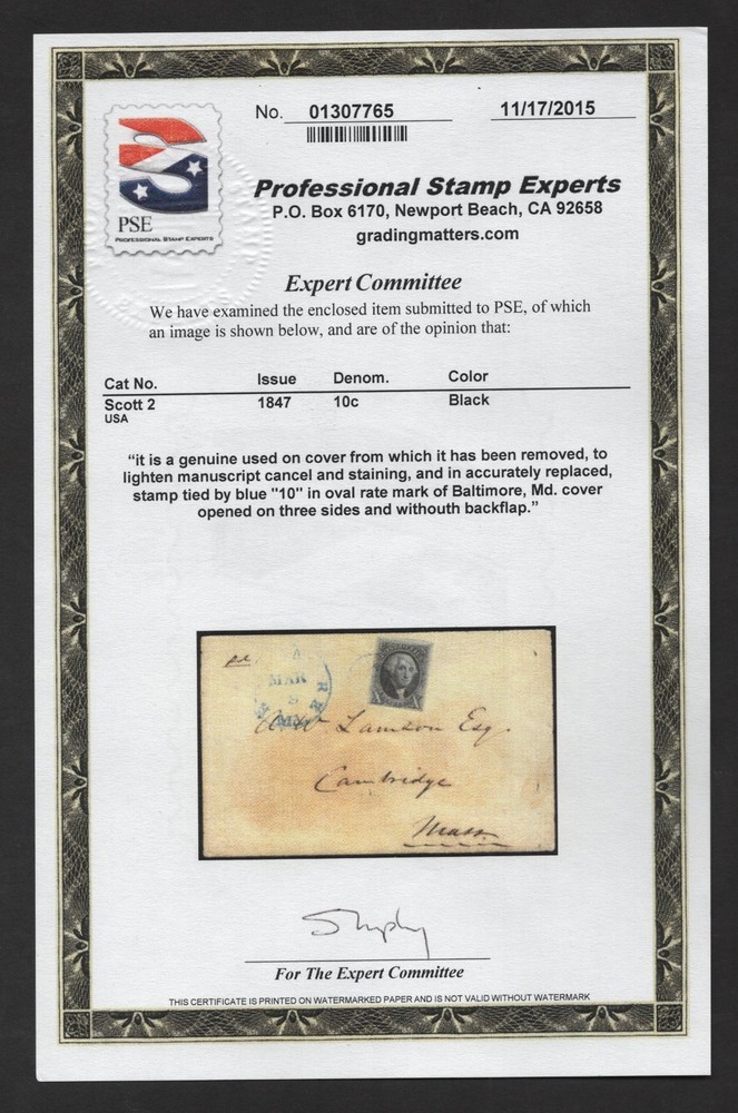 US 1840s COVER WITH SCOTT #2 TIED INCLUDES PSE CERTIFICATE CATALOG VALUE $1,650 PLEASE VISIT MY EBAY STORE : Filatco Stamps BUY 5 ITEMS SHIPPING & REGISTRATION IS FREE INTERNATIONAL BUYERS PLEASE NOTE: ALL SHIPMENTS INCLUDE TRACKING Feel free to ask if you have any questions. PAYMENT WITHIN 2 DAYS IS APPRECIATED . FEEDBACK : I APPRECIATE YOUR BUSINESS AND MY TOP CONCERN IS TO MAKE SURE YOU ARE 100% PLEASED WITH ANY ITEM YOU PURCHASE. IF YOU HAVE A CONCERN OR A PROBLEM WITH INVOICE, SHIPPING OR ANY ITEM YOU RECEIVED PLEASE CONTACT ME FIRST BEFORE YOU LEAVE ANY FEEDBACK. I GUARANTEE YOU WILL BE 100% SATISFIED WITH THE TRANSACTION. I WILL CERTAINLY LEAVE YOU A POSITIVE FEEDBACK AS SOON AS I RECEIVE YOURS.