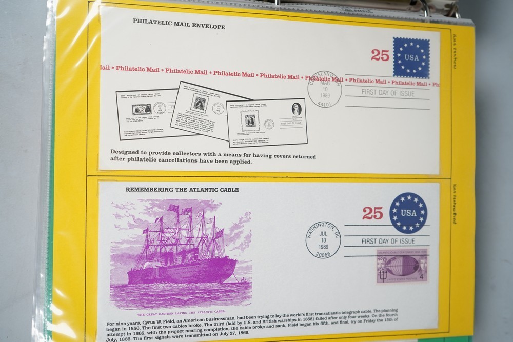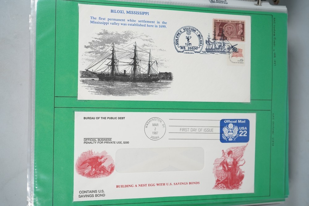 SMALL COLLECTION OF BETTER US FDCS IN COVER ALBUM. INCLUDES KMC VENTURE. BOBCAT $2 FULL SHEET PUGH HAND PAINTED, BEVIL (CHRISTMAS, CLOWNS, BASEBALL & COLUMBUS, GEERLINGS SPACE, FOOTBALL & MARSHALL ISLANDS MIXED FRANK, HIDALGO SPACE COMBINATION, DORIS GOLD SPACE HAND PAINTED, CAMILE RENDAR CATS HAND PAINTED, JACK FOLLOWS BASEBALL HAND PAINTED, PUGH FULL SHEETS & FARLEY NATIONAL PARKS. ATTRACTIVE GROUP. (SCROLL DOWN TO VIEW ALL COVERS INCLUDED IN THIS COLLECTION) PLEASE VISIT MY EBAY STORE : Filatco Stamps BUY 5 ITEMS SHIPPING & REGISTRATION IS FREE INTERNATIONAL BUYERS PLEASE NOTE: EBAY AND PAYPAL REQUIRE REGISTRATION FOR TRACKING INTERNATIONAL SHIPMENTS. EBAY CHARGES $15.00 FOR SHIPPING LABELS WITH TRACKING # US POST OFFICE CHARGES $14.95 FOR REGISTRATION # + POSTAGE Feel free to ask if you have any questions. PAYMENT WITHIN 2 DAYS IS APPRECIATED . FEEDBACK : I APPRECIATE YOUR BUSINESS AND MY TOP CONCERN IS TO MAKE SURE YOU ARE 100% PLEASED WITH ANY ITEM YOU PURCHASE. IF YOU HAVE A CONCERN OR A PROBLEM WITH INVOICE, SHIPPING OR ANY ITEM YOU RECEIVED PLEASE CONTACT ME FIRST BEFORE YOU LEAVE ANY FEEDBACK. I GUARANTEE YOU WILL BE 100% SATISFIED WITH THE TRANSACTION. I WILL CERTAINLY LEAVE YOU A POSITIVE FEEDBACK AS SOON AS I RECEIVE YOURS.