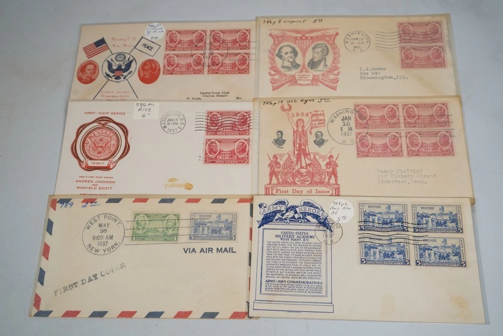 US 1936-1937 COLLECTION OF SEVERAL HUNDRED FDCS FIRST DAY COVERS. MANY DIFFERENT CACHET DESIGNERS WITH FULL SETS & CACHET VARIETIES. INCLUDES ANDERSON, BRONESKY, RICE, GRANDY, GRIMSLAND, IOOR, KAPNER, DYER, LINPRINT, PLIMPTON, SUDDUTH, DIETZ, LAIRD & MANY UNIDENTIFIED., NOTE THAT A NUMBER OF FULL SETS WERE NOT TAKEN OUT OF THE SLEEVES TO BE PICTURED. PLEASE VISIT MY EBAY STORE : Filatco Stamps BUY 5 ITEMS SHIPPING & REGISTRATION IS FREE INTERNATIONAL BUYERS PLEASE NOTE: ALL SHIPMENTS INCLUDE TRACKING Feel free to ask if you have any questions. PAYMENT WITHIN 2 DAYS IS APPRECIATED . FEEDBACK : I APPRECIATE YOUR BUSINESS AND MY TOP CONCERN IS TO MAKE SURE YOU ARE 100% PLEASED WITH ANY ITEM YOU PURCHASE. IF YOU HAVE A CONCERN OR A PROBLEM WITH INVOICE, SHIPPING OR ANY ITEM YOU RECEIVED PLEASE CONTACT ME FIRST BEFORE YOU LEAVE ANY FEEDBACK. I GUARANTEE YOU WILL BE 100% SATISFIED WITH THE TRANSACTION. I WILL CERTAINLY LEAVE YOU A POSITIVE FEEDBACK AS SOON AS I RECEIVE YOURS.
