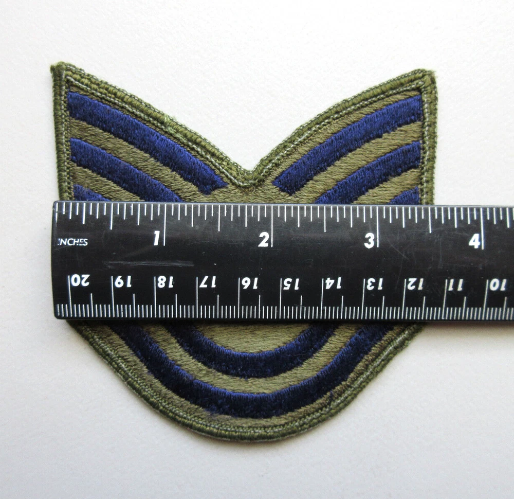 *USAF TECHNICAL SERGEANT RANK PATCH #5* L11B See ruler in pictures for patch size Listing is for 1 patch only 3 1/2 inches wide Check all pictures good before you buy $$$ Patch will be shipped USPS with tracking # Fast / Free shipping Check out my other USAF patches for sale in my Ebay store $ Buy with confidence see my ratings and feedback $ Check out my other items ! I STRIVE FOR A FIVE STAR RATING. THANK YOU. Froo www.froo.com | Froo Cross Sell, Free Cross Sell, Cross promote, eBay Marketing, eBay listing Apps, eBay Apps, eBay Application