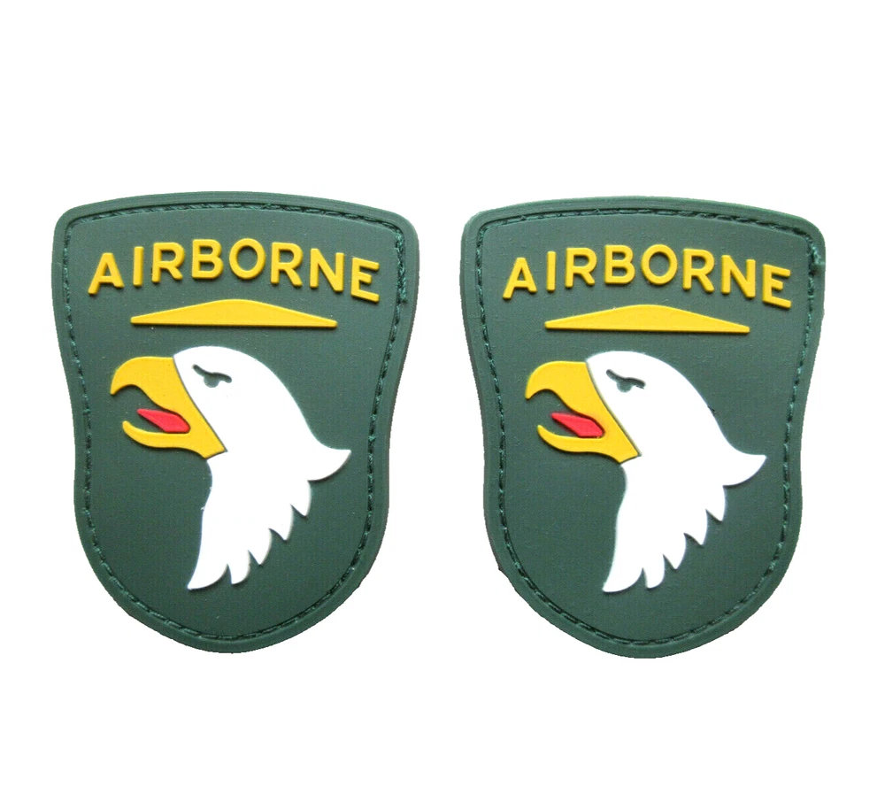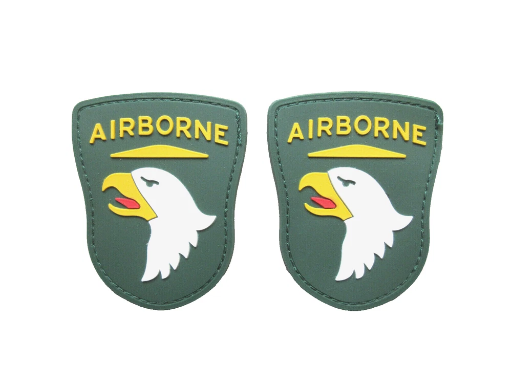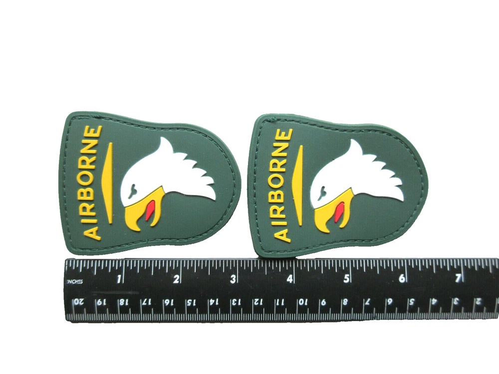 *ARMY 101ST AIRBORNE DIVISION PVC RUBBER PATCHES* L9 2 LOT / See ruler in pictures for patch sizes Green colored patches 2 1/2 inches wide x 3 inches high NEW hook & loop backed patches Patches will be shipped USPS with tracking # FAST SHIPPING Check all pictures good before you buy $$$ Check out my other PATCHES for sale in my Ebay store * Buy with confidence see my ratings and feedback * Check out my other items ! I STRIVE FOR A FIVE STAR RATING. THANK YOU. Froo www.froo.com | Froo Cross Sell, Free Cross Sell, Cross promote, eBay Marketing, eBay listing Apps, eBay Apps, eBay Application