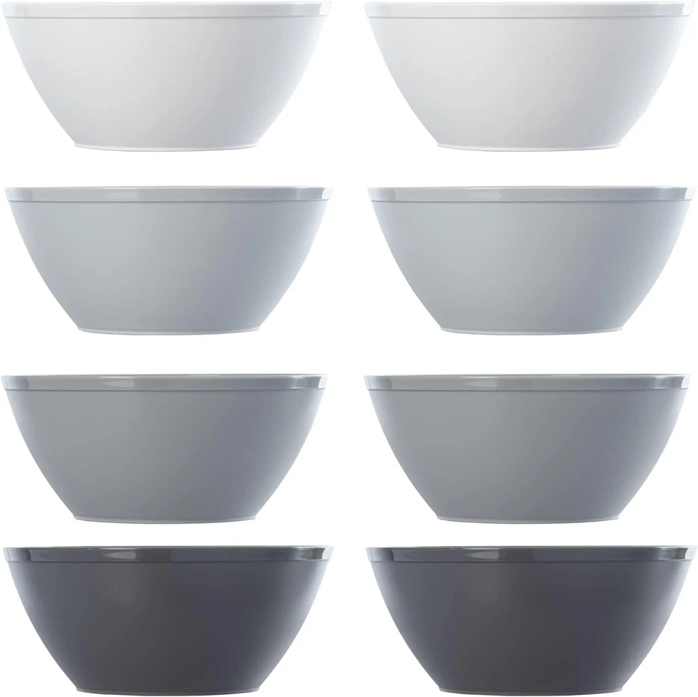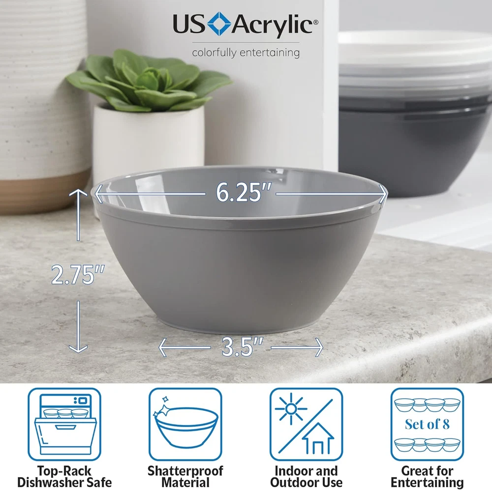 Store New Arrivals Add to Favorite View Feedback Contact US Acrylic Unbreakable 28 Oz. Plastic Stackable Cereal Bowls for Snacks & Ice Cream in Grey Colors (Set of 8) 6-Inch Reusable, Bpa-Free, Made in the USA, Dishwasher Safe Dinnerware Description Item model number 9223 Style Classic Capacity 1.8 Pounds Pattern Solid Country of Origin USA Theme Party Number of Pieces 8 Bowl Material Plastic Product Dimensions 6.25"W x 2.75"H Material Polypropylene (PP) Is Microwaveable No Specific Uses For Product Ice Cream, Cereal Manufacturer US Acrylic Is Dishwasher Safe Yes Item Weight 2.24 ounces Occasion Housewarming Special Feature Durable, Stackable, Dishwasher Safe Color Gray Shape Round Included Components Set of 8 bowls Brand US Acrylic Product Care Instructions Dishwasher Safe Size 6-inch Diameter Enjoy everyday meals and snacks with confidence using our American-made 28oz set of 8 bowls designed for your convenience. Crafted from BPA-free durable plastic, this tableware set ensures safety without compromising quality, making them ideal for both indoor and outdoor use. These pieces feature a smooth top edge for comfort, a classic textured wall design and a lightweight build, our dinnerware cereal bowls offers both style and practicality for any occasion. This design will add an updated look to your kitchen aesthetic and easily stacks to save space on cabinet shelves. Say goodbye to worries about breakage with our shatter-resistant set, perfect for parties, family gatherings, and outdoor events. This classic style plastic collection is a great addition to any college dorm room, first apartment, rv, and camper. Consider adding these as a wedding registry gift for a new household. Stackable and dishwasher safe, these bowls are designed for easy storage and cleanup, adding convenience to your daily routine. Entertain outdoors at the patio, pool, or hot tub with these durable and shatterproof pieces. The 28 ounce bowl (6.25” diameter x 2.75” tall) in shades of grey is versatile and suitable for any tabletop need. Product Description These are the perfect bowls for busy lifestyles! Great for serving individual salads alongside the main entrée. A quick and complete solution for your next outdoor party. Reduces waste and eliminates the need for disposable dinnerware. Versatile enough to be used every day and durable enough for use by the pool. The perfect break-resistant bowl set for the new college student or first apartment. These bowls are a fun addition to any new kitchen. They nest and stack neatly for easy storage in kitchen cabinets. A step up from disposable dinnerware, they are also great for the patio or picnic. They won't shatter or crack like glass if dropped. Cleans easily on the top rack of the dishwasher. They are BPA-free and made in the USA. About US Acrylic US Acrylic was founded in 1978 and has been producing high quality drinkware and tableware for over 40 years. With the largest product selection that offers superior clarity and exceptional durability. US Acrylic continuously introduces fresh designs and colors. Fresco Bowls Colorfully Entertaining Enjoy your favorite meal with these colorful bowls. Perfect for everyday use at family dinners and meals on the patio. Serve guests breakfast, lunch, and dinner by the pool with these durable tableware pieces. The bold colors, strong material, and textured finish compose the design of the Fresco bowl sets. They fit into any style or theme. Shatterproof Reusable Bold Colors Factory located in Libertyville, IL. All products designed by our team in the USA. Female-led organization with women holding key management roles within the company. We have been experts in our field since 1978 and provide knowledgeable and reliable service. To extend the life of our products we recommend handwashing or cleaning in the top-rack of the dishwasher. ABOUT US We offer the best prices around on high quality products. Our E-store includes media such as books, movies, music and games while offering electronics, toys, sporting apparel, clothing, tools, general home, garden items and more. SHIPPING We are always working hard to ensure your package arrives as soon as possible. Please understand that some factors like weather, high postal traffic, and the performance of shipping companies are outside of our control. We offer free shipping to the lower 48 states and ship within 2 business days of payment, usually sooner. We do not accept P.O. Boxes. Please provide a physical address. RETURNS We offer a 30-Day Return Policy on items which you are not completely satisfied with. You have the option for a full-refund or an exchange of the item. No returns are available on items shipped outside of the USA. PAYMENT We accept PayPal. CONTACT US This page content is yet to come Please ad us to your favorite seller and visit again later Thank You CUSTOMER SATISFACTION We try our very best to make sure every customer is completely satisfied. If there's a problem, message us! We're happy to help.