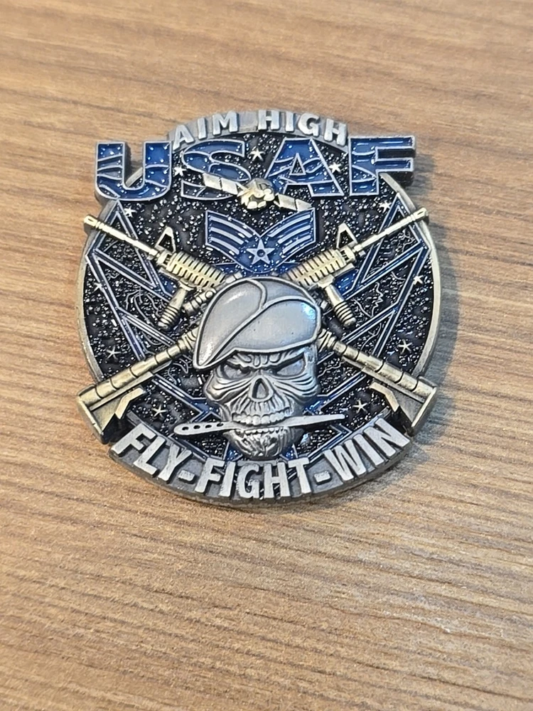 US Air Force E-4 Senior Airman Rank Grey Beret Challenge Coin