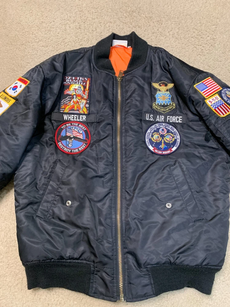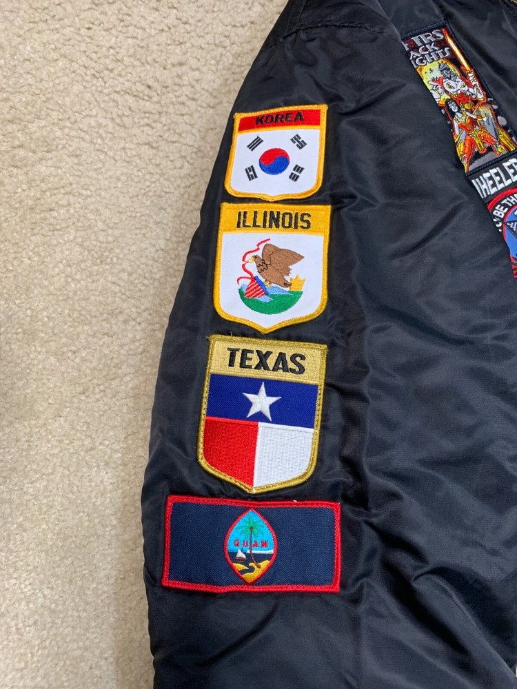 US Air Force Nylon Bomber Jacket MyForce Size L Korea Guam Texas Illinois