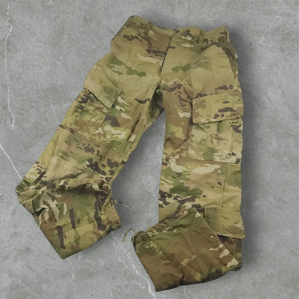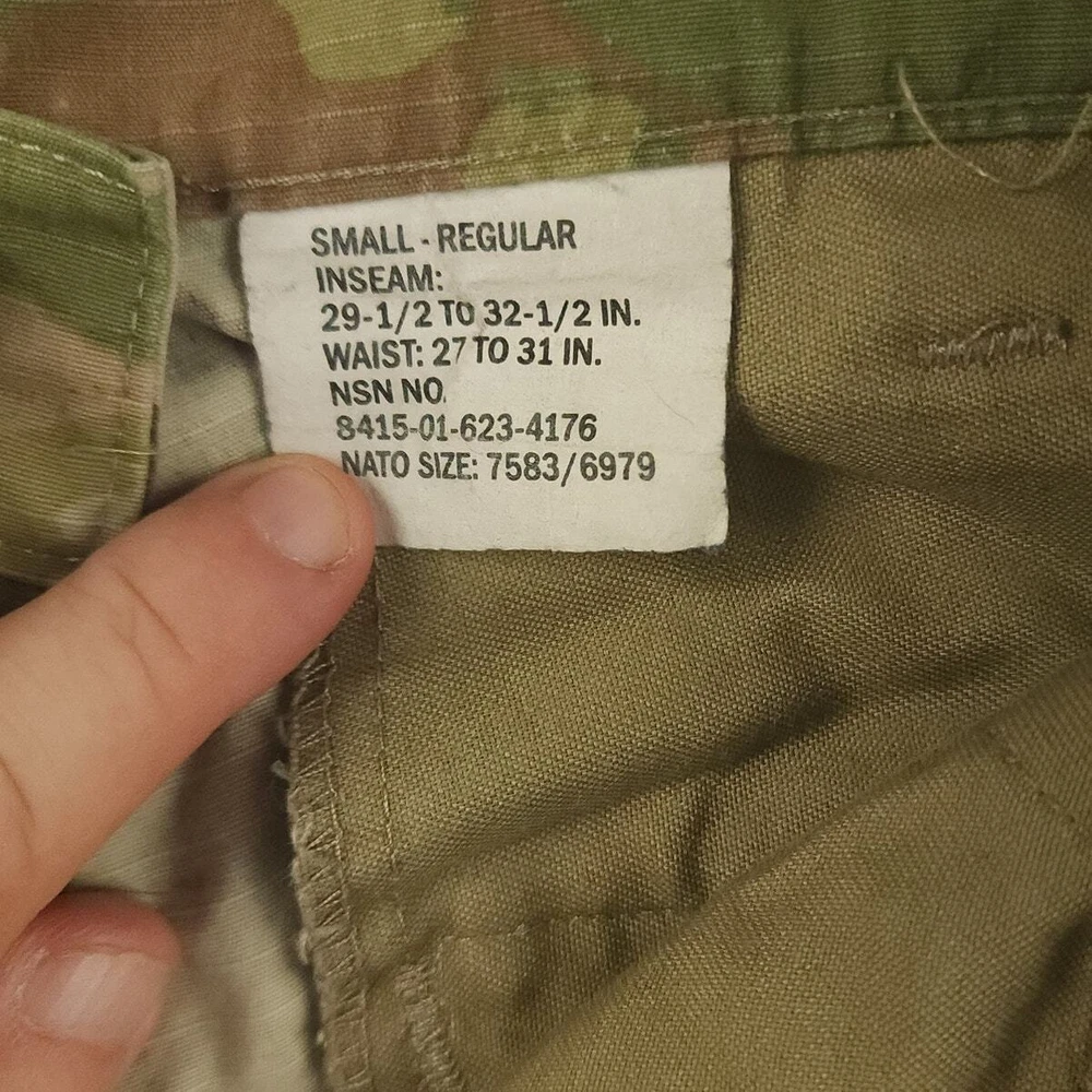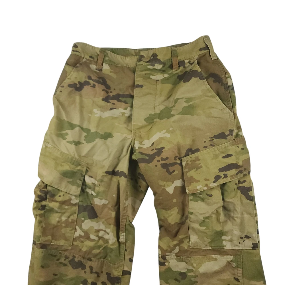 US Army Trousers Pants S 30 Unisex OCP Scorpion Camo Cargo Ripstop Double Knee Made in USA Nylon These adjustable waist Army Combat OCP scorpion camo cargo pants are going to provide you that militaria vibe and look. They are going to sit at or slightly above your waist and provide that regular fit tapered leg. Get them before they are gone!! Product Details Waist 31 inches Inseam 31 inches Rise 12.5 inches Leg 17 inches Thigh/Hip 39 inches Knee 20 inches Material 50% cotton/50% nylon USA I ship the same day if the order is received by 1 PM EST or ship the next day utilizing recycled, sustainable packaging and materials. I do not ship to Belarus, Russia, Mexico, Vietnam, and Germany due to national shipping requirements/restrictions. I offer automatic combined shipping and also I offer bundle and shipping discounts for 2 or more items purchased in my store. Buyer is responsible for the payment of all import fees if international sale. I accept returns if permitted by the platform that the item was purchased on within 30 days of delivery date. Items must be returned in the condition received. International returns are at the buyer's expense. All clothing items have been steam cleaned and/or washed. If you have questions, I will respond as quickly as I can.