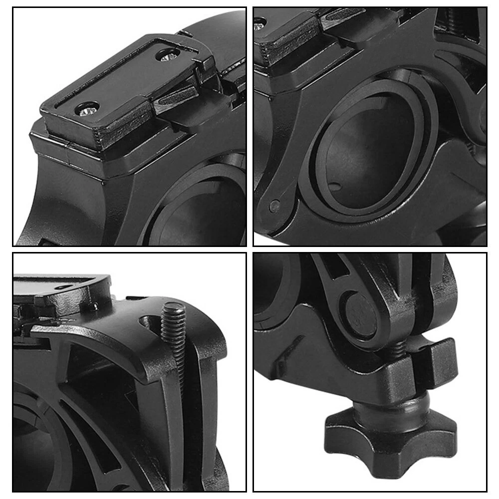EAN: Does not apply Colour: Black Country/Region of Manufacture: China Material: Plastic Features: 360 Rotation gtin13: Does not apply UPC: Does not apply Color: Black Type: Bicycle Light Holder Brand: Unbranded