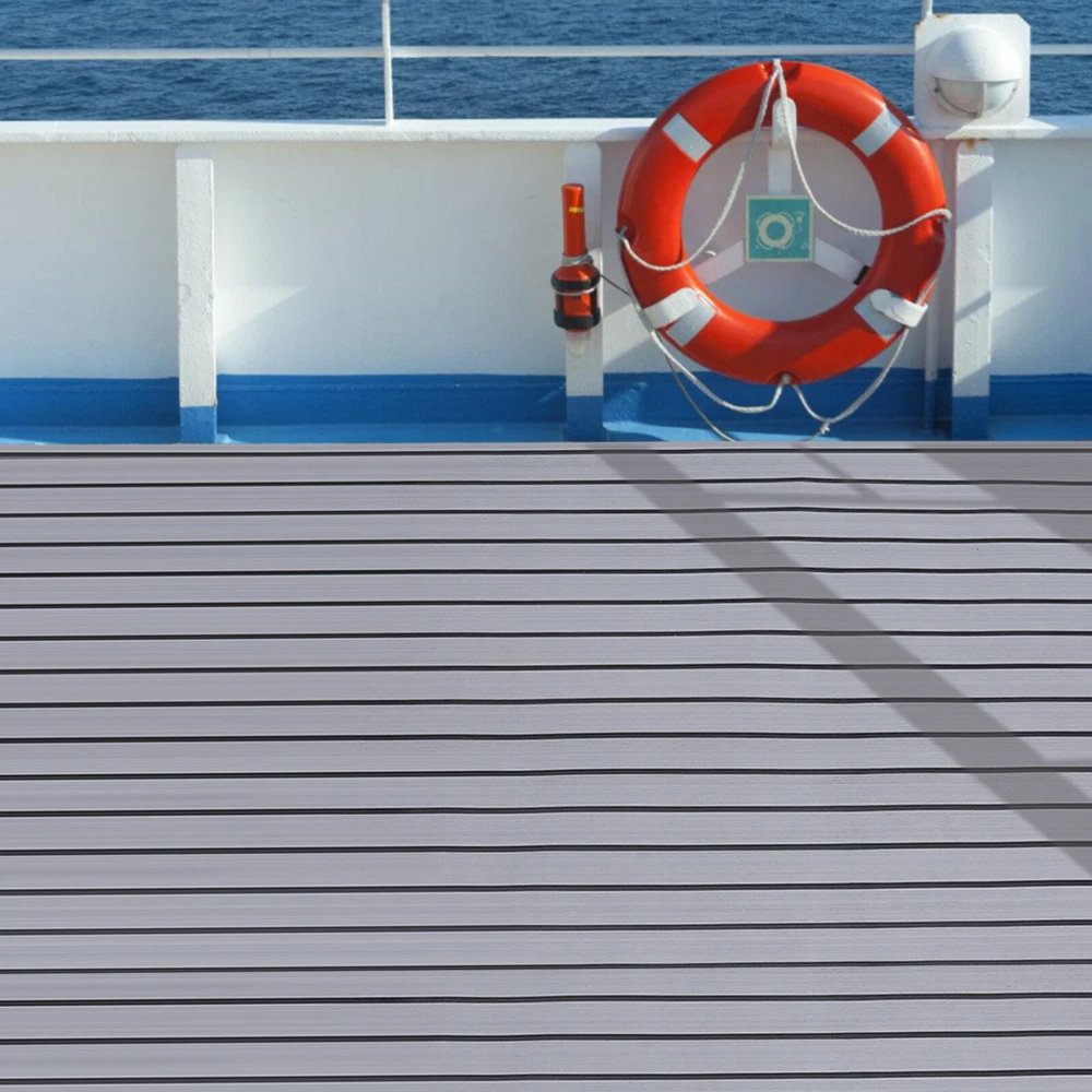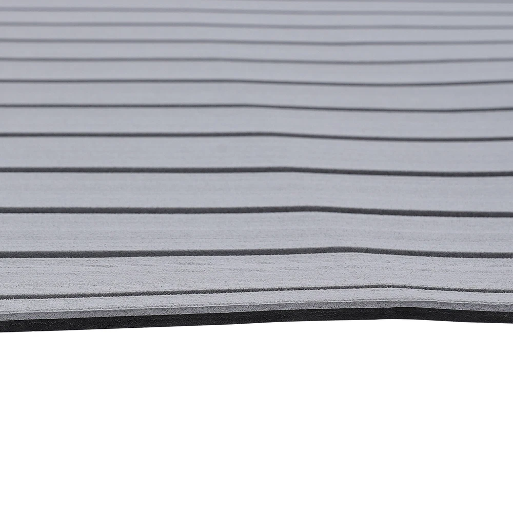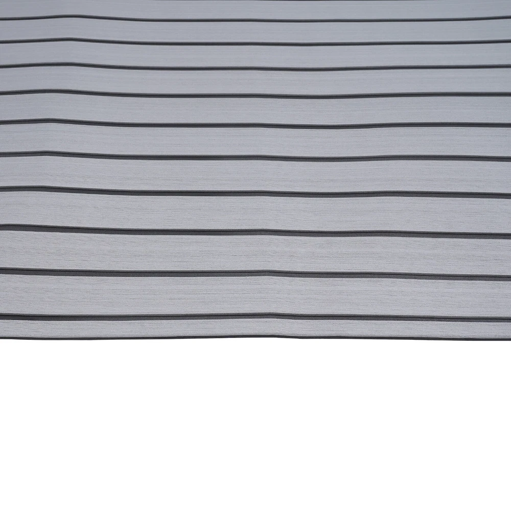 Application Il peut être utilisé sur les ponts de bateaux, les véhicules récréatifs, les yachts, les quais flottants, les salles de sport et autres endroits. Spécifications Matériau : Mousse EVA Couleur : Gris avec des bandes noires Type : Tapis de sol en teck Condition : Nouveau Longueur : 240cm/94,5''. Largeur : 90 cm/35.4''. Epaisseur : 6mm/0.24''. Poids brut : 2.2kg Installation 1. Mesurez la taille de l'emplacement cible et découpez la taille appropriée. 2. Nettoyez et séchez le sol, et assurez-vous que la surface est exempte d'huile, d'eau et de cire. 3. Collez-la soigneusement sur le sol. Le paquet comprend 1 x Tapis antidérapant Notes : 1. Évitez de placer des objets lourds et mobiles au-dessus, comme un conteneur. Le produit ne peut pas résister à une friction excessive. 2. Faites attention au feu en cas d'accident d'incendie. 3. S'il vous plaît permettre la légère différence de couleur causée par la lumière de tir et 1-3cm erreur en raison de la mesure manuelle, et assurez-vous que vous ne dérange pas avant l'achat. 4. Si vous avez l'impression que le collage d'une couche du tapis antidérapant n'est pas assez souple pour être confortable, vous pouvez coller 2 ou 3 couches pour vous assurer qu'il est assez souple.