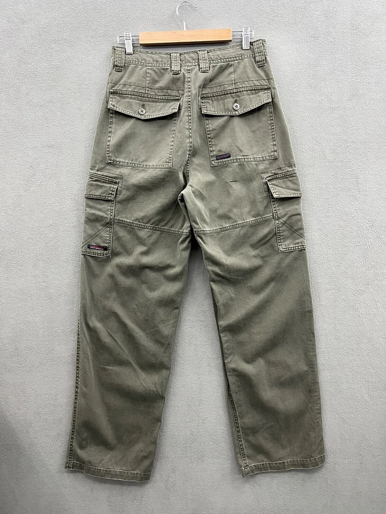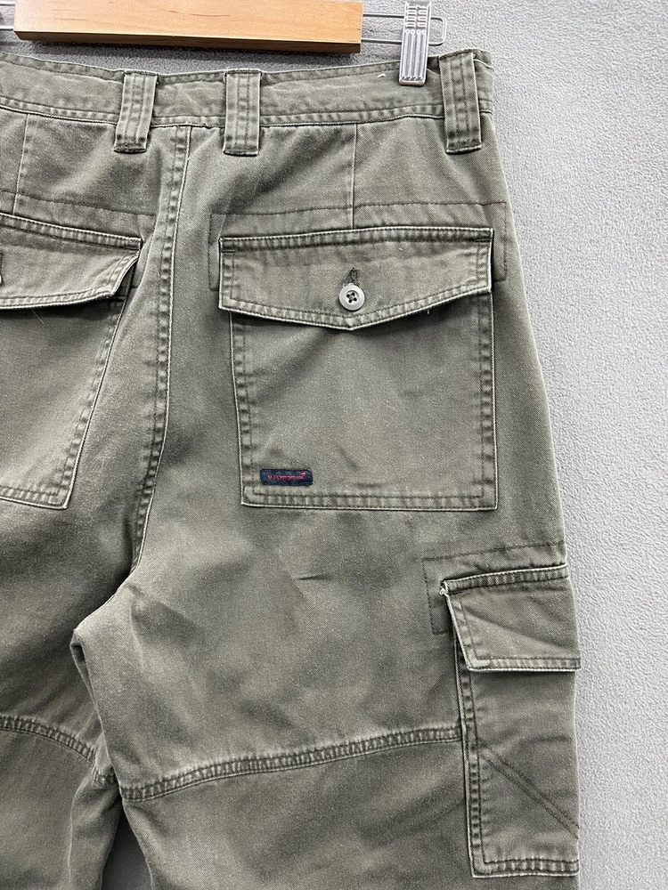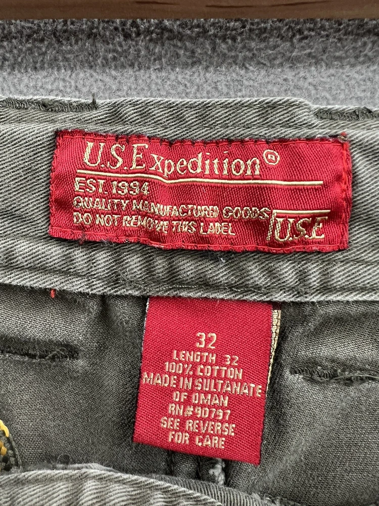 Get ready for your next adventure with these US Expedition Men's Cargo Pants in a stylish green hue. These pants feature a solid pattern and a relaxed fit, making them perfect for travel, workwear or casual occasions. The pants come with a variety of closures including zip, button and drawstring, and a flat front design. The canvas fabric and high rise provide both durability and comfort while the cargo pockets offer ample storage for your essentials. These pants are available in size 32 with a 31-inch inseam and can be worn in any season. Add these cargo pants to your wardrobe today!