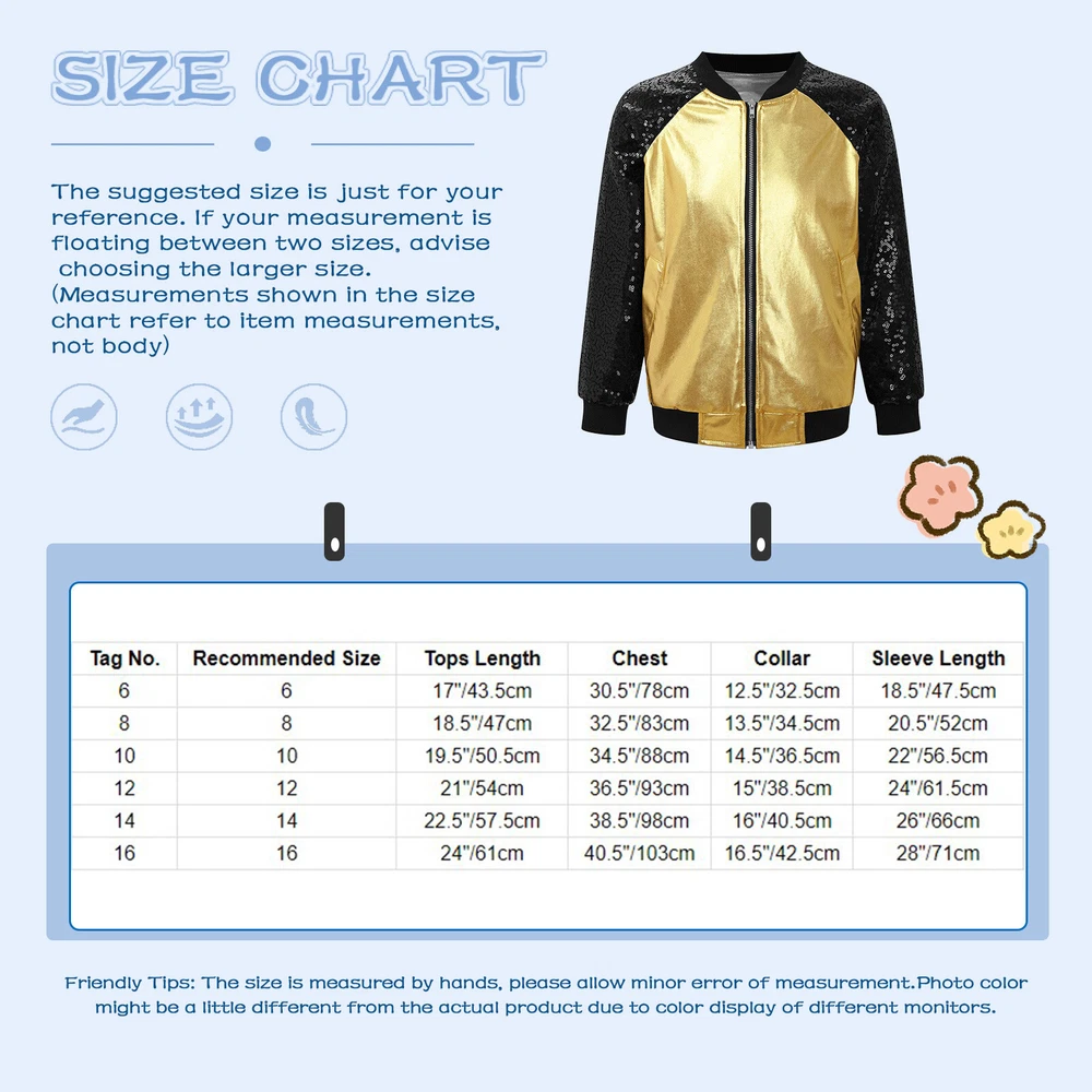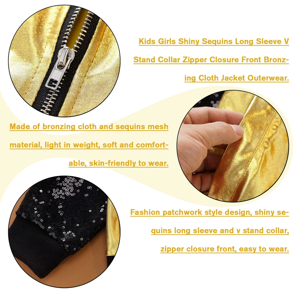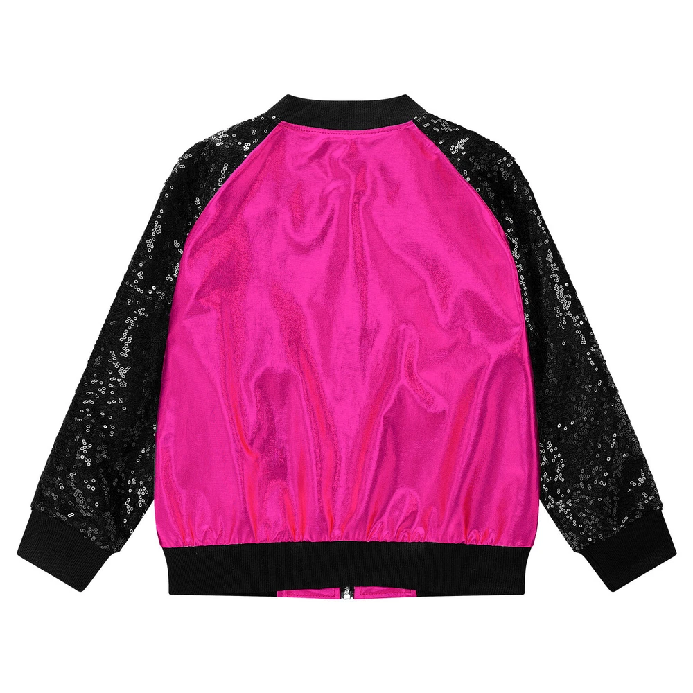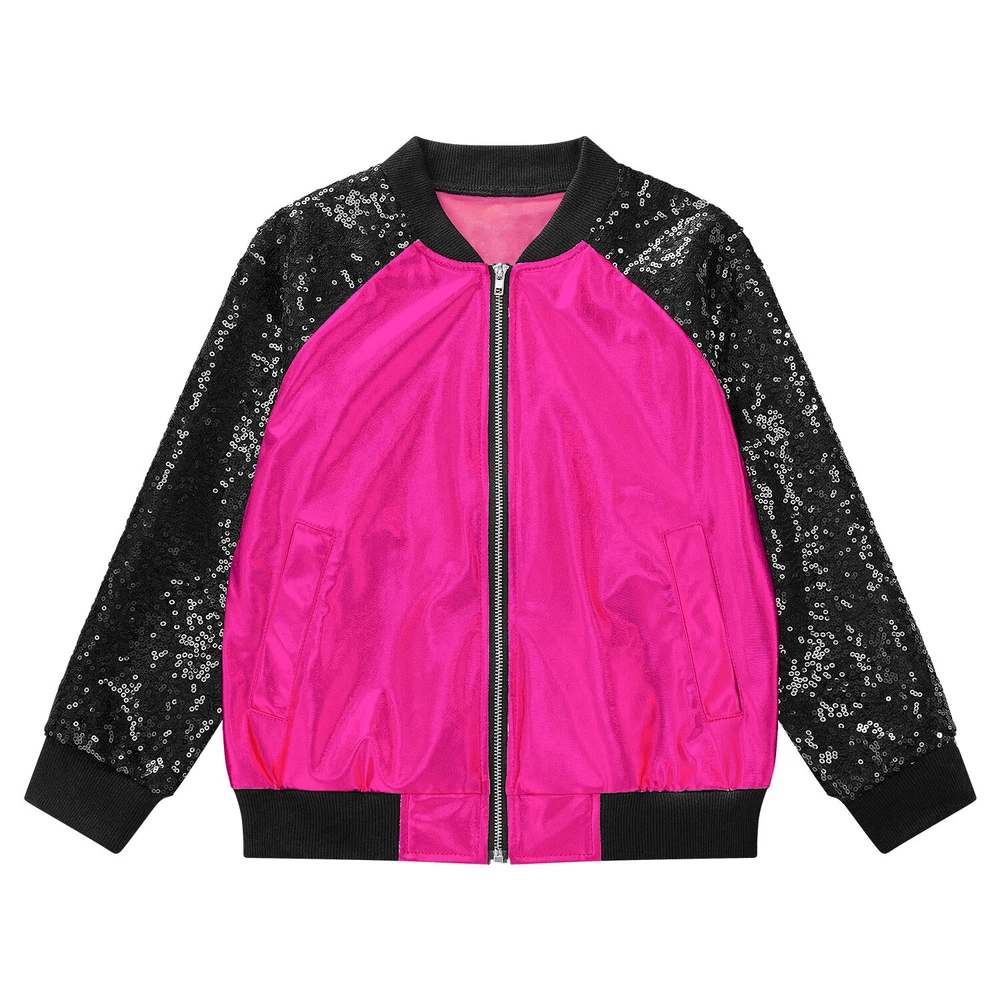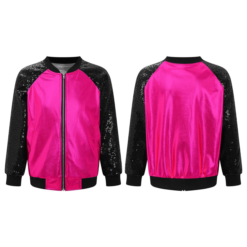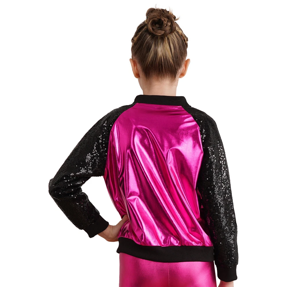 US Girl Boys Sparkly Metallic Bomber Flight Jacket Hip-Hop Jazz Disco Dance Coat