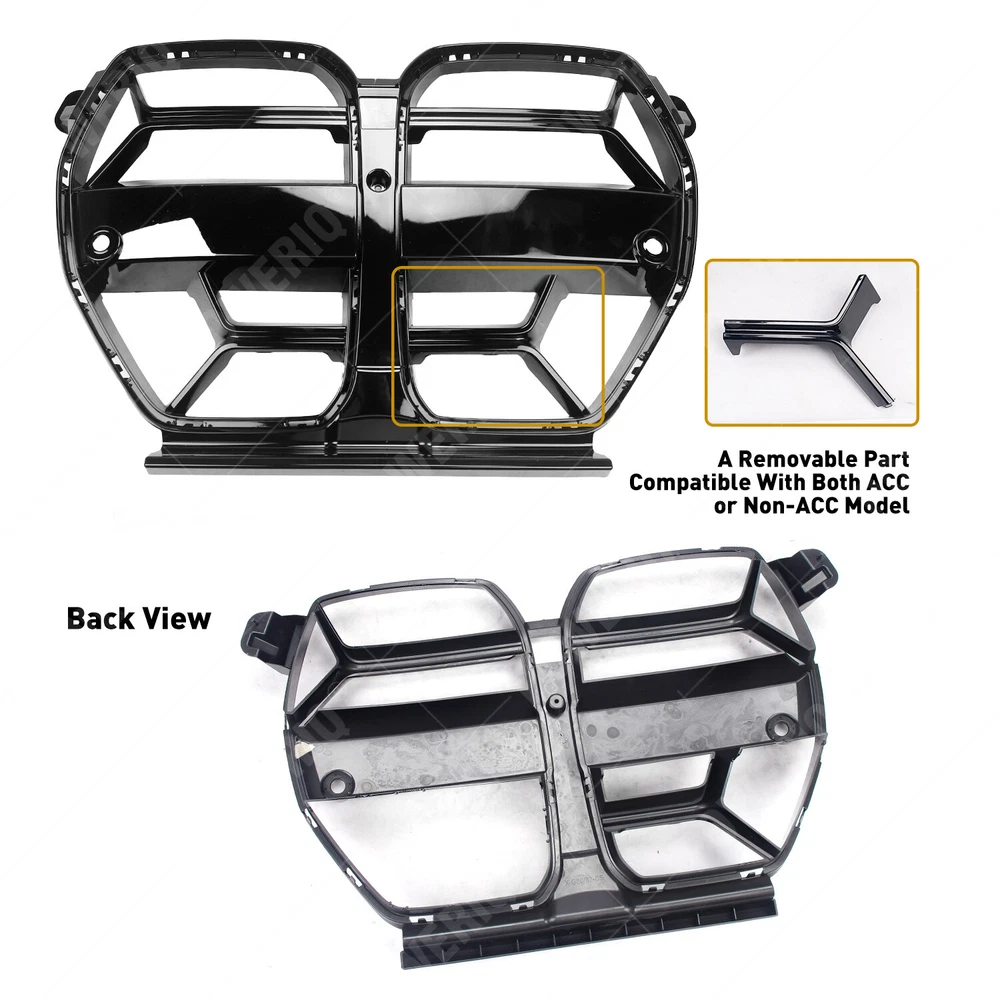Fitm ent : For G80 M3 2021-2023 All Models For G82 G83 M4 2021-2023 All Models Note: Comes With Removable Lower Piece, Makes It Compatible With Both ACC And Non-ACC Descri ption : 100% Brand New. Made of Light Weight & Top-Grade Durable ABS Material. Color: Painted Glossy Black Surface Finish. Please Note This Is Not Factory Color Match Paint. It's Generic Glossy Black Color. Replacement Grill That Replaces The Original Front Kidney Grill. Pre-Installed With Radar/Sensor Adapter. This Grill Comes With Removal Piece Which Makes it Compatible With Models With or Without ACC. Not Only Improves The Front End Appearance of Your Car, But Is Designed To Efficiently Channel The Air Flow Into the Engine Bay And Reduce The Drag. *Instruction Not Included, Removal of the Bumper and Original Grill is Required. Professional Installation Is Highly Recommended.* Featu res : Color:Glossy Black Material:ABS Packag e includes: 1pcs Front Grill No te : 1. Only the above package content and other products are not included. 2. Light shooting and different displays may cause the color of the item in the picture a little different from the real thing. The measurement allowed error is +/- 1-3cm.