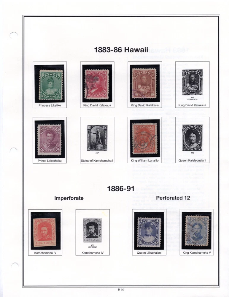 US HAWAII 1864-1899 COLLECTION OF 38 STAMPS MINT & USED MOUNTED ON 6 ALBUM PAGES SOME UNUSED WITH NO GUM SOME WITH HINGES, FEW NEVER HINGED IT INCLUDES SC. #63 & 73 MINT PLEASE VISIT MY EBAY STORE : Filatco Stamps BUY 5 ITEMS SHIPPING & REGISTRATION IS FREE INTERNATIONAL BUYERS PLEASE NOTE: EBAY AND PAYPAL REQUIRE REGISTRATION FOR TRACKING INTERNATIONAL SHIPMENTS. EBAY CHARGES $12.61 FOR SHIPPING LABELS WITH TRAKING # US POST OFFICE CHARGES $14.95 FOR REGISTRATION # + POSTAGE BUYER HAS THE CHOICE OF SHIPPING FIRST CLASS MAIL WITHOUT TRACKING # FOR $2.50 . IN THIS CASE BUYER ACCEPTS RESPONSIBILITY IF ITEM IS LOST IN TRANSIT. Feel free to ask if you have any questions. PAYMENT WITHIN 2 DAYS IS APPRECIATED . FEEDBACK : I APPRECIATE YOUR BUSINESS AND MY TOP CONCERN IS TO MAKE SURE YOU ARE 100% PLEASED WITH ANY ITEM YOU PURCHASE. IF YOU HAVE A CONCERN OR A PROBLEM WITH INVOICE, SHIPPING OR ANY ITEM YOU RECEIVED PLEASE CONTACT ME FIRST BEFORE YOU LEAVE ANY FEEDBACK. I GUARANTEE YOU WILL BE 100% SATISFIED WITH THE TRANSACTION. I WILL CERTAINLY LEAVE YOU A POSITIVE FEEDBACK AS SOON AS I RECEIVE YOURS.