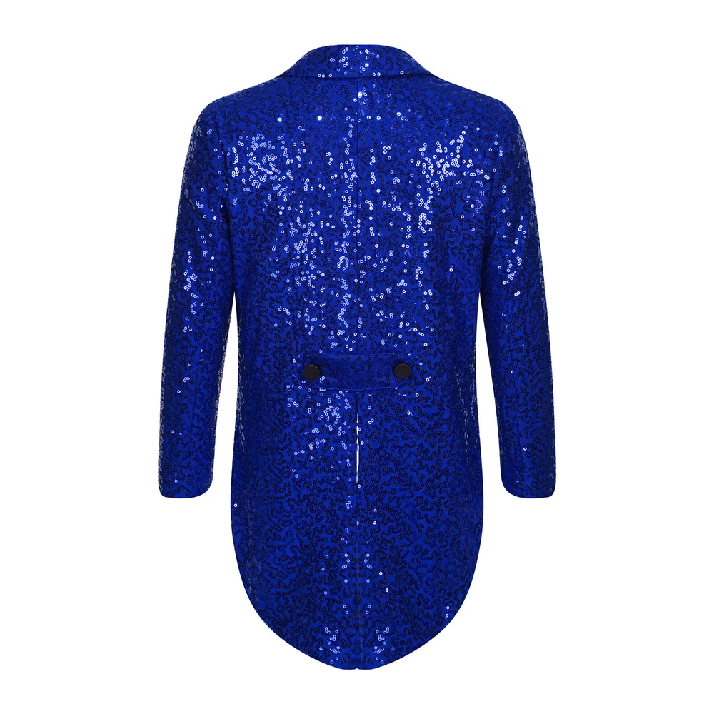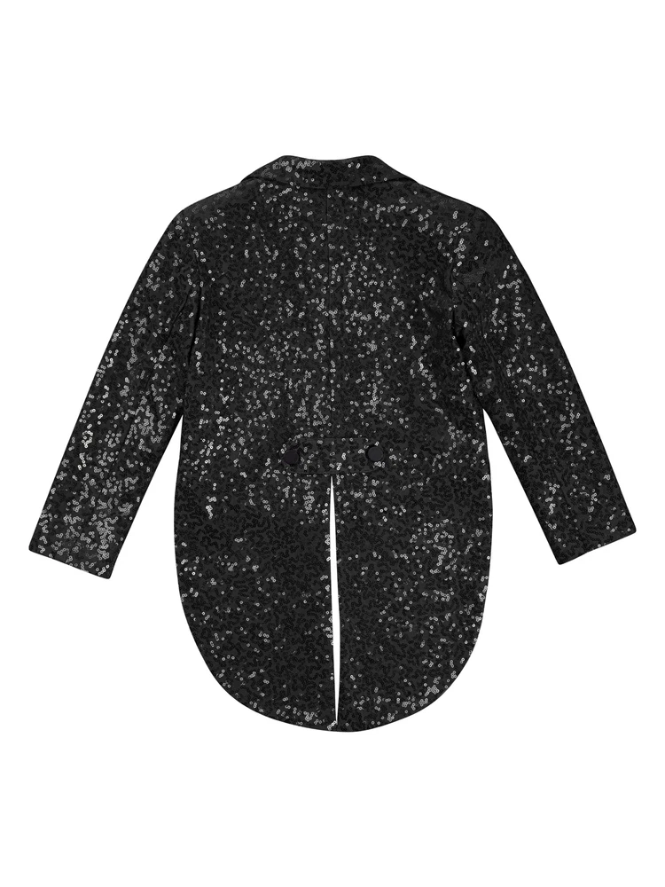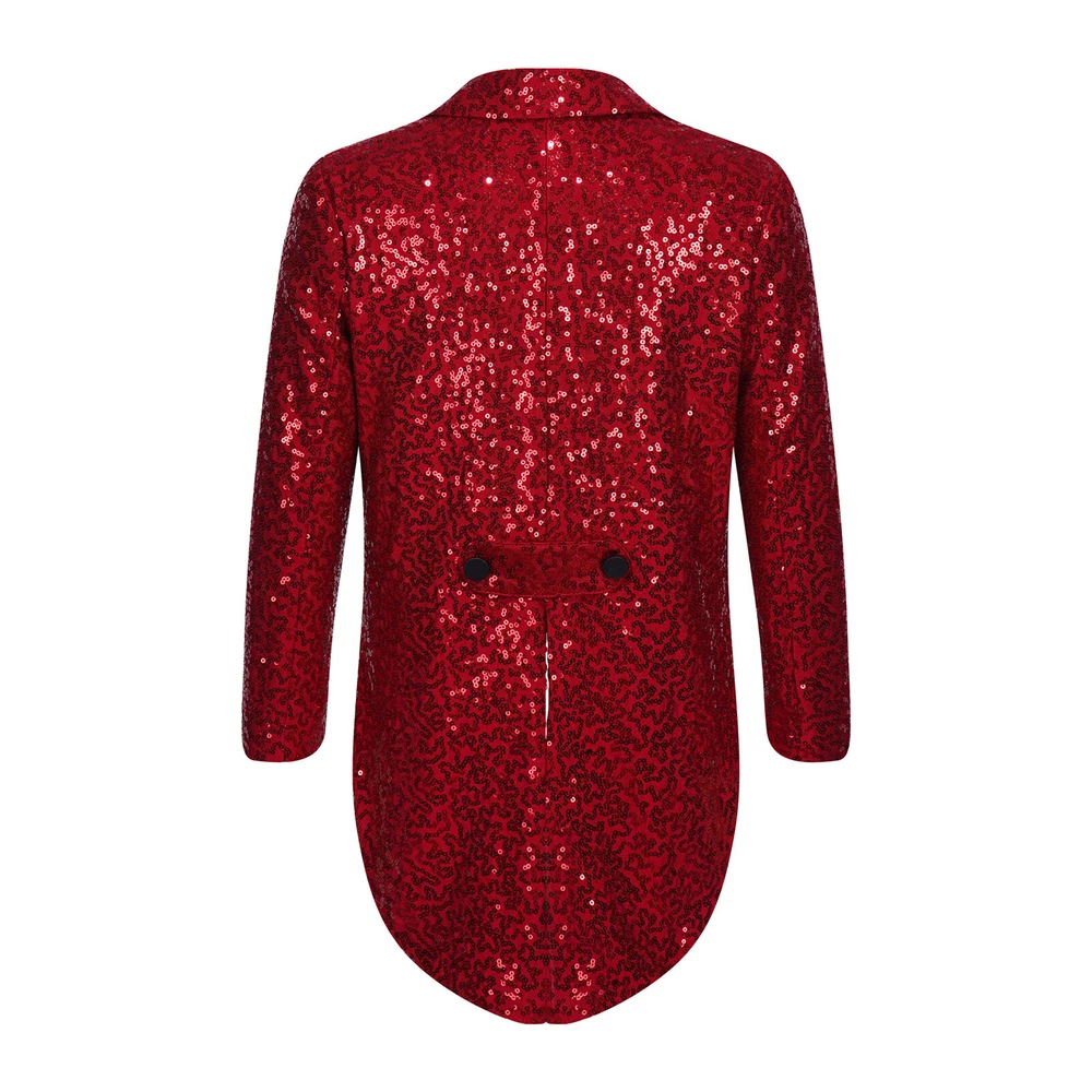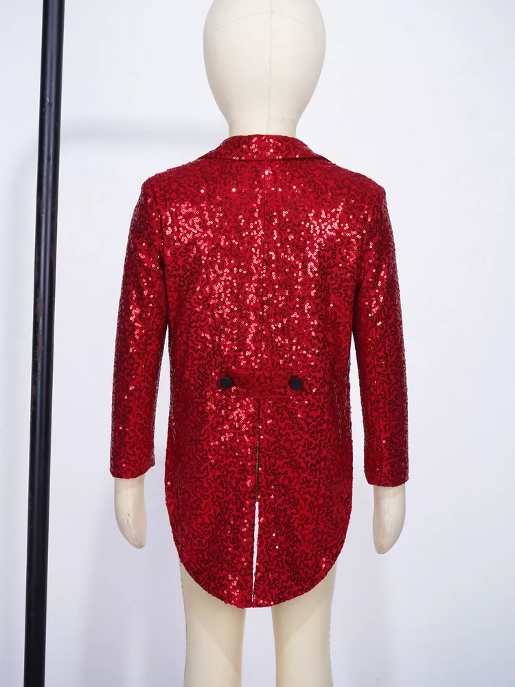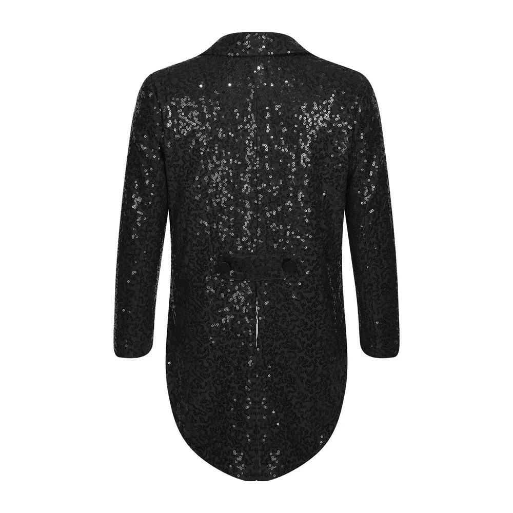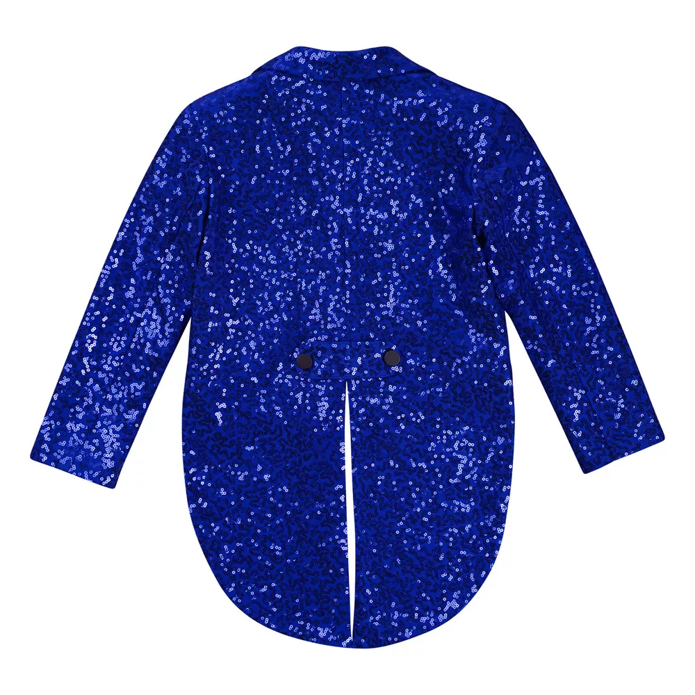 US Kids Boys Sequin Tailcoat Jacket Classic Fit Tuxedo with Tails Party Coat Top