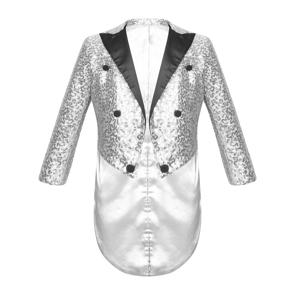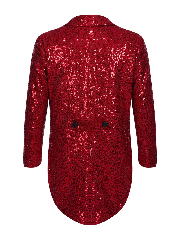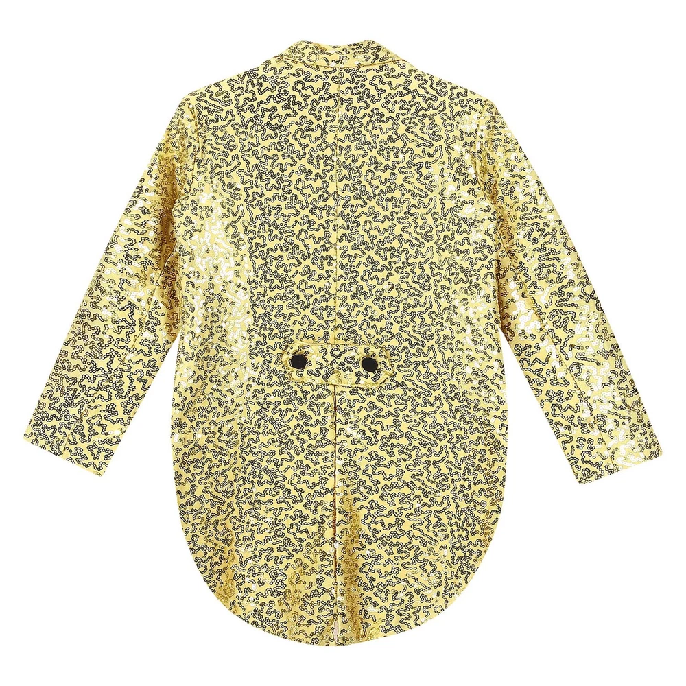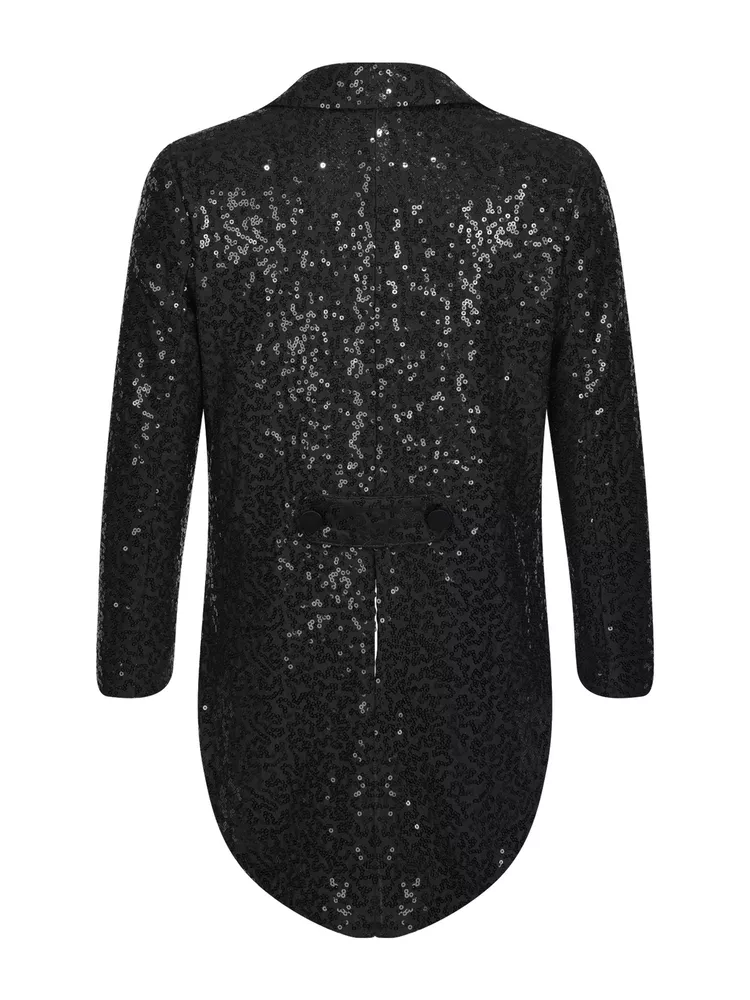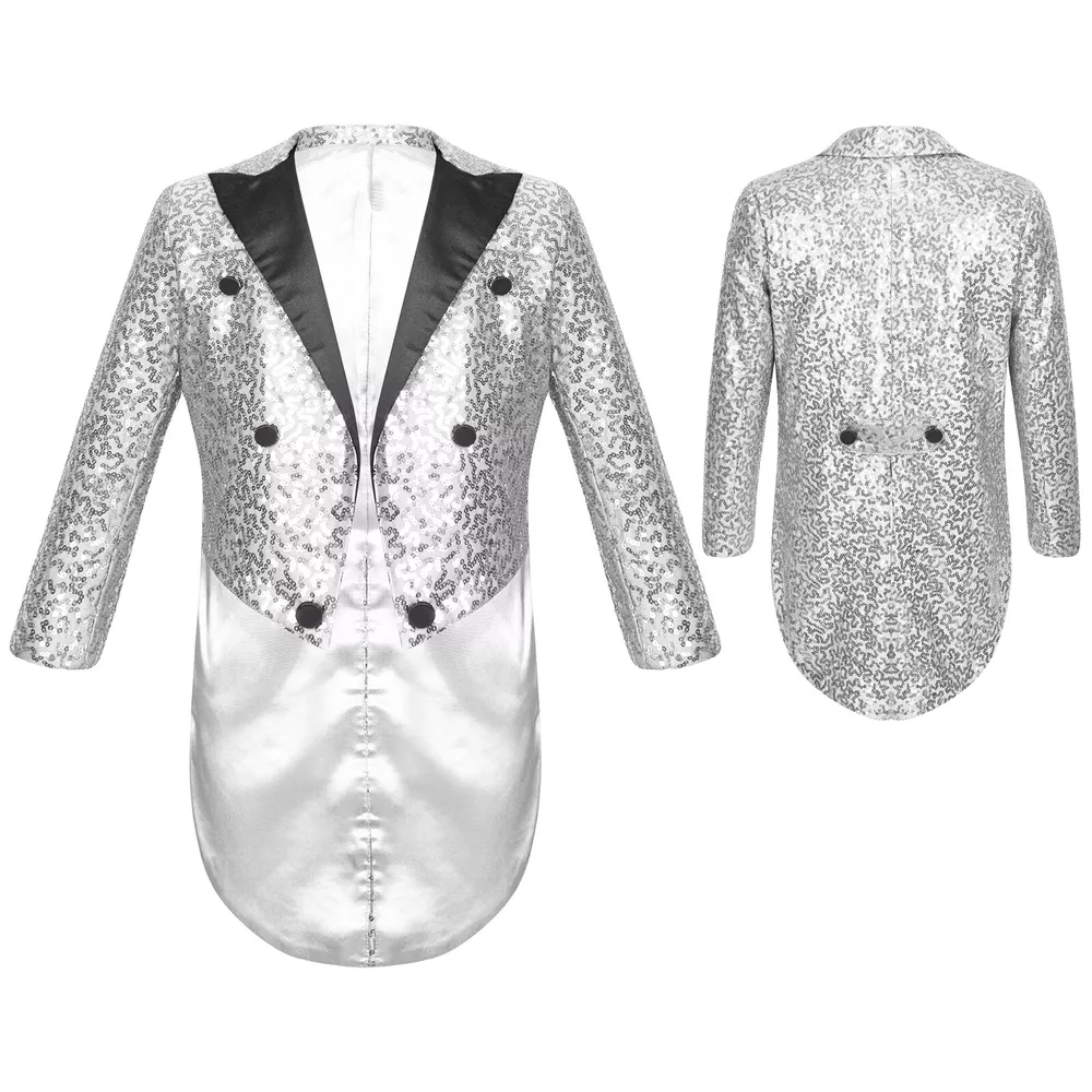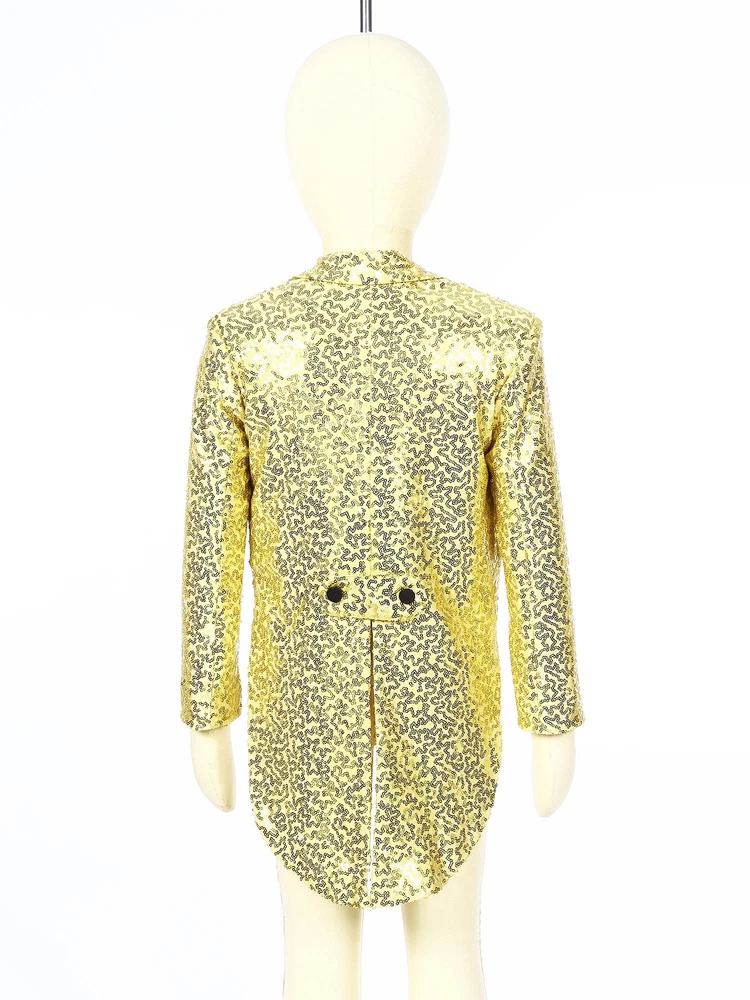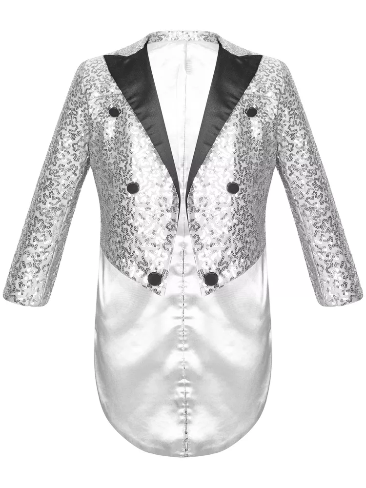 US Kids Boys Sequin Tailcoat Jacket Classic Fit Tuxedo with Tails Party Coat Top