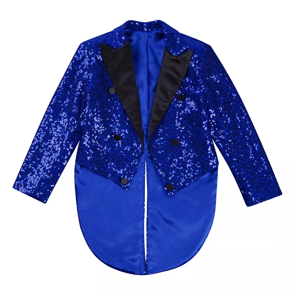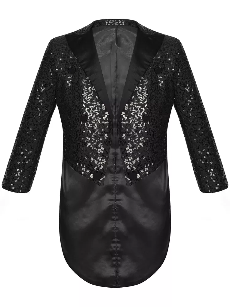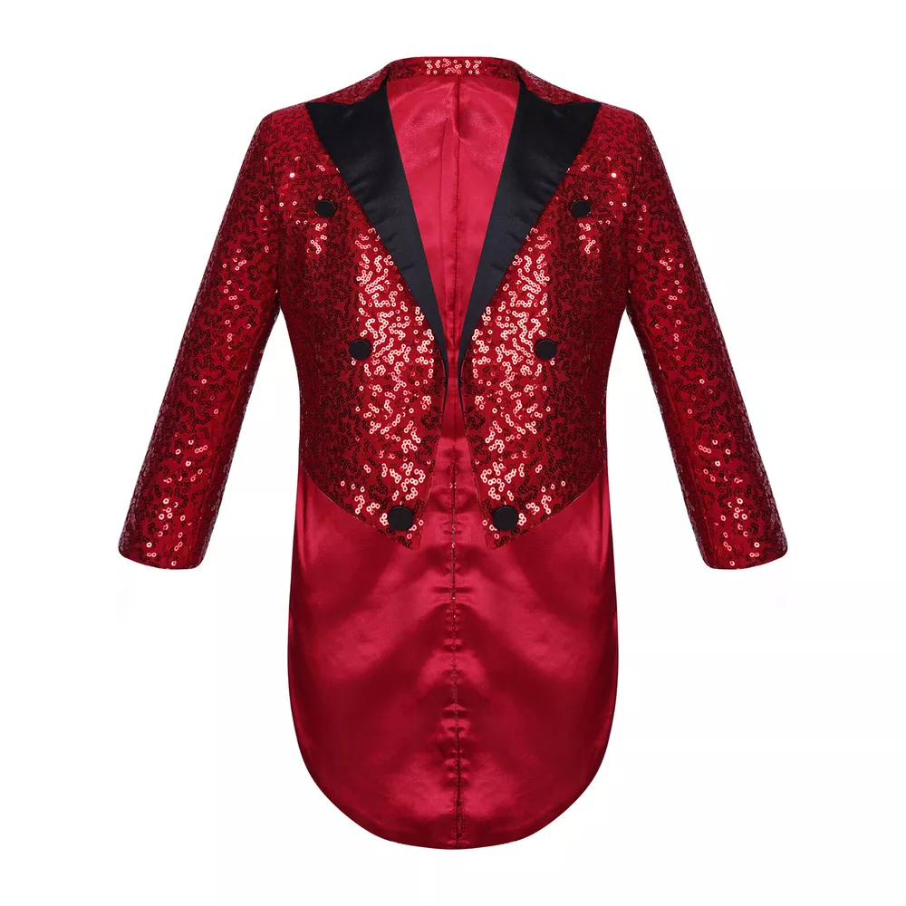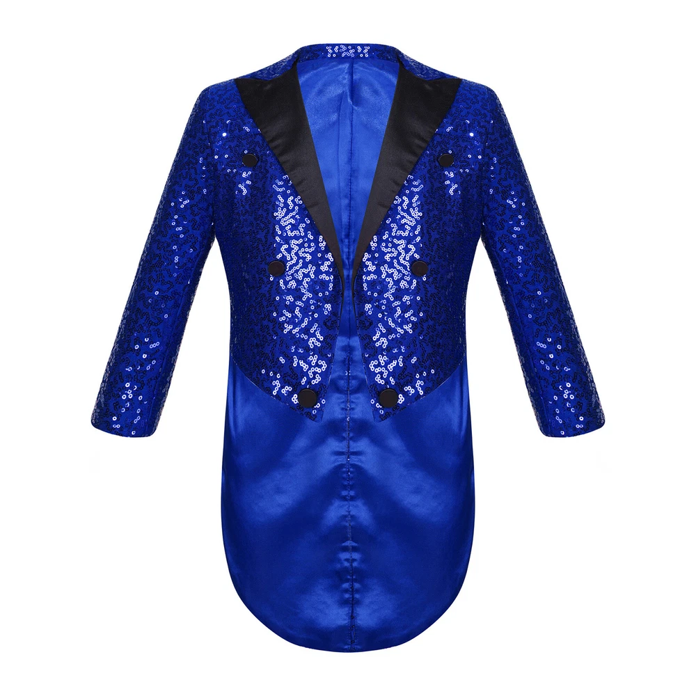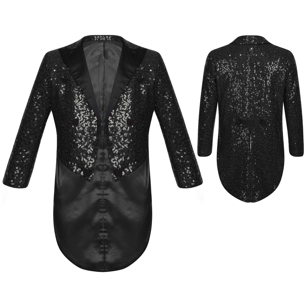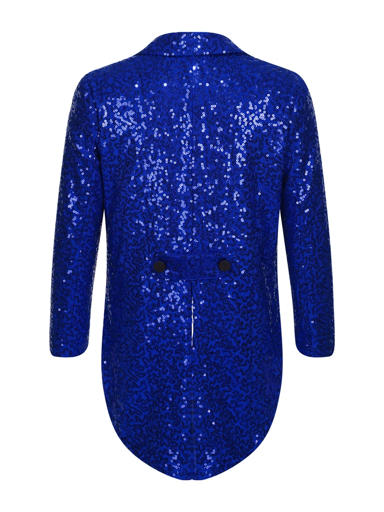 US Kids Boys Sequin Tailcoat Jacket Classic Fit Tuxedo with Tails Party Coat Top