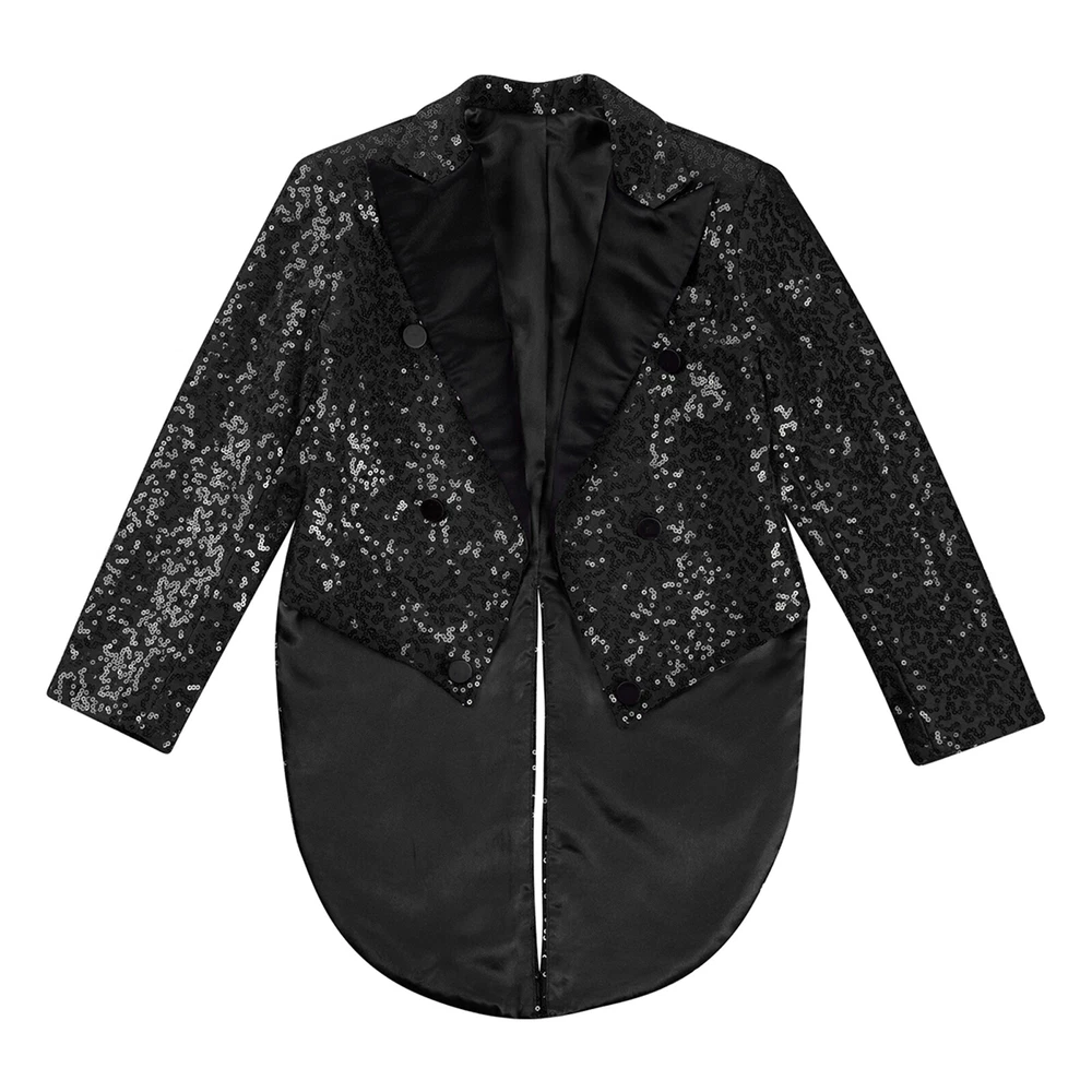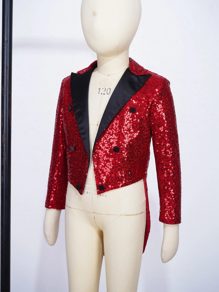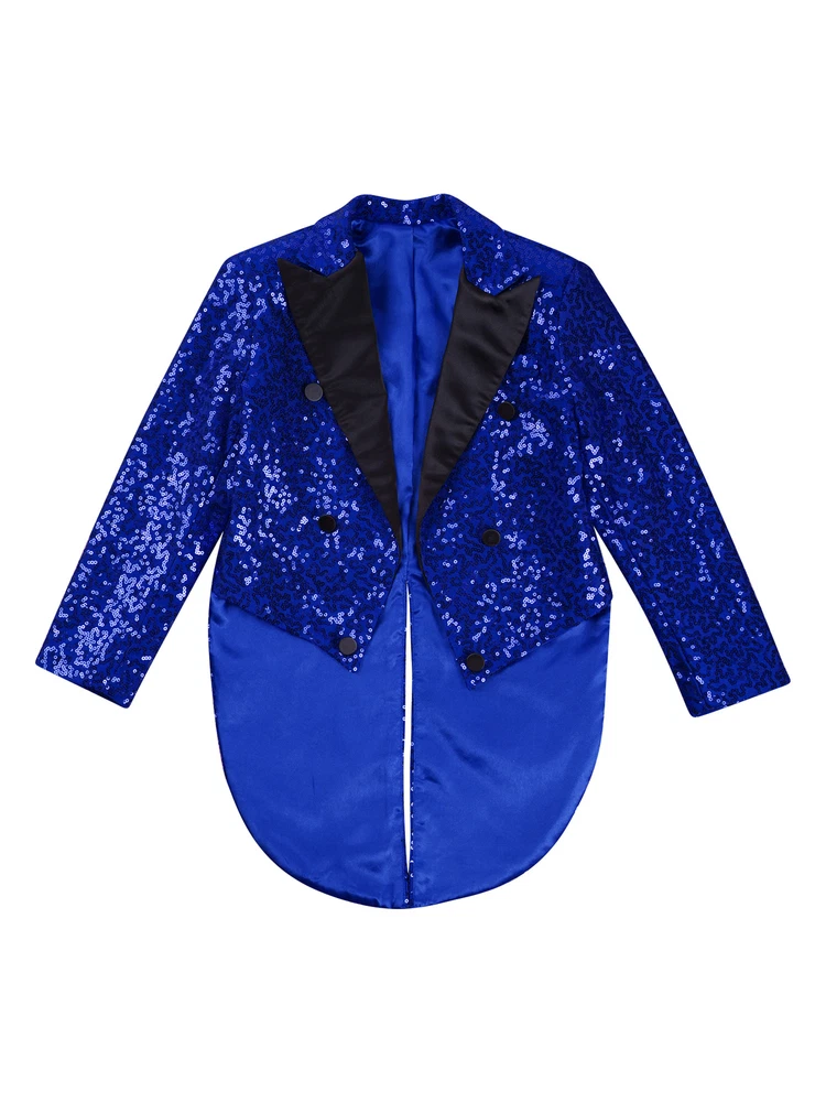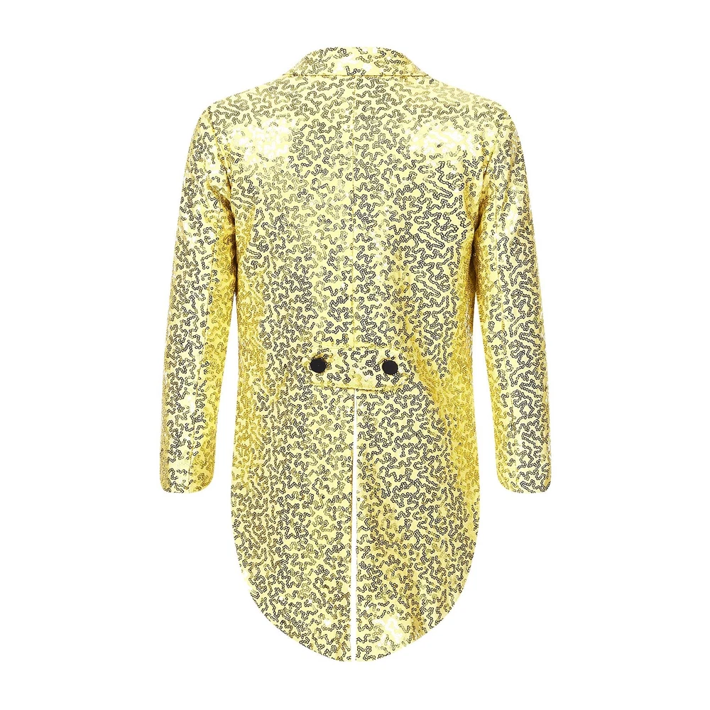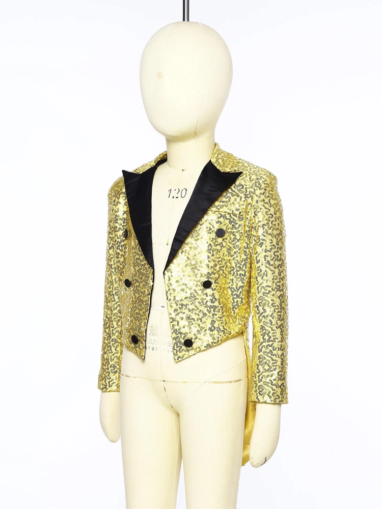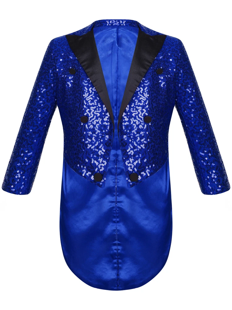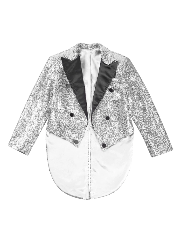 US Kids Boys Sequin Tailcoat Jacket Classic Fit Tuxedo with Tails Party Coat Top