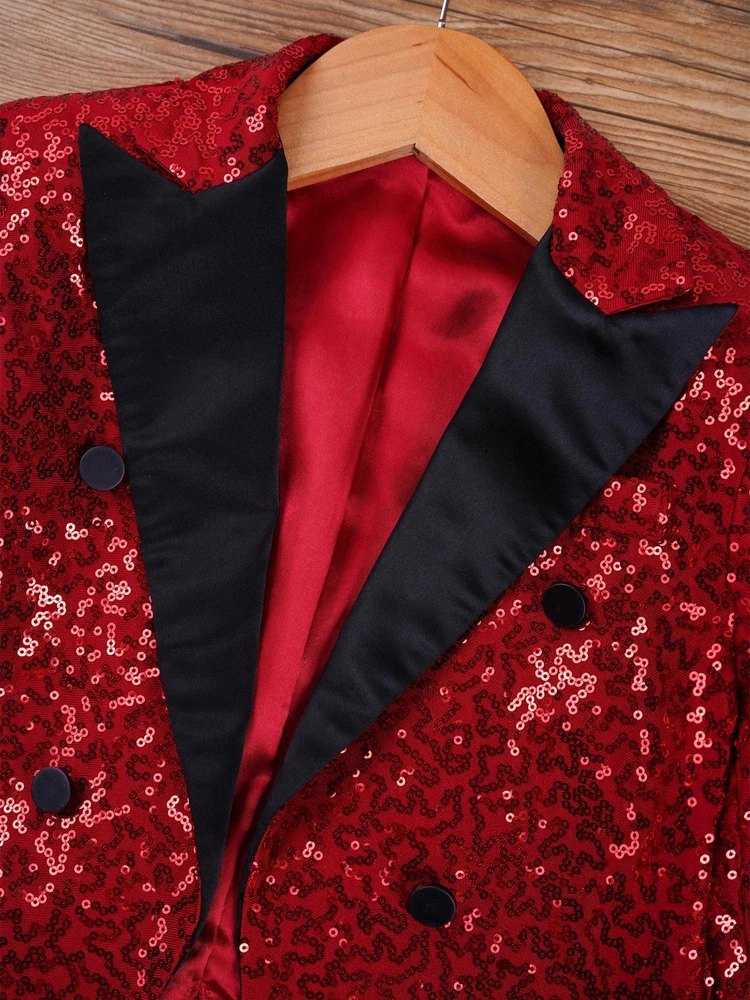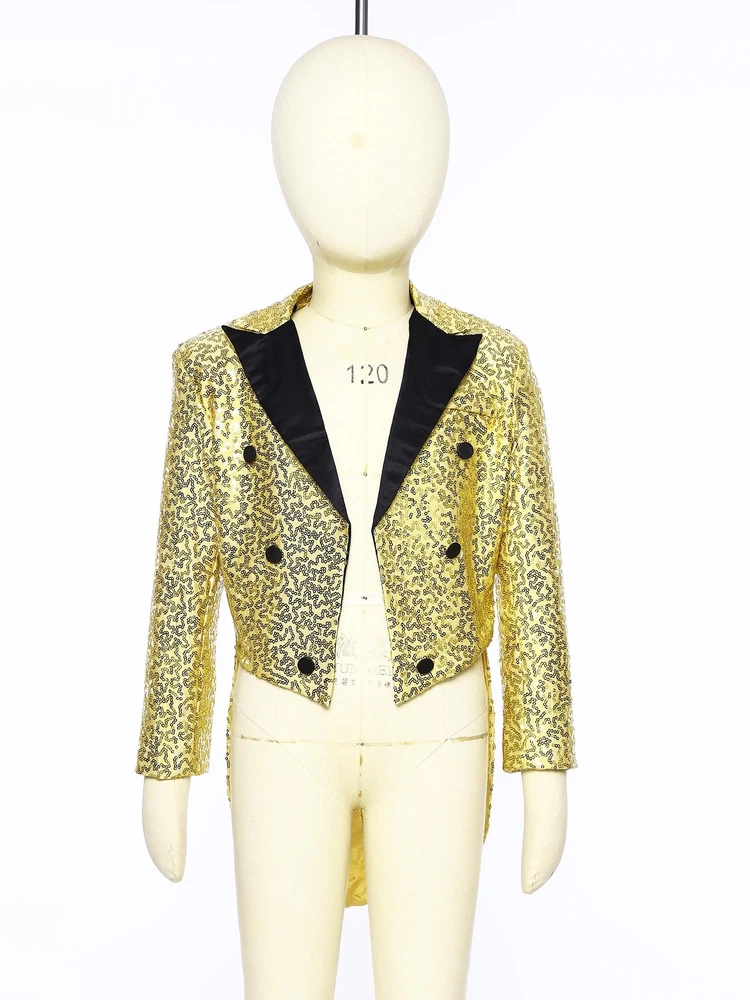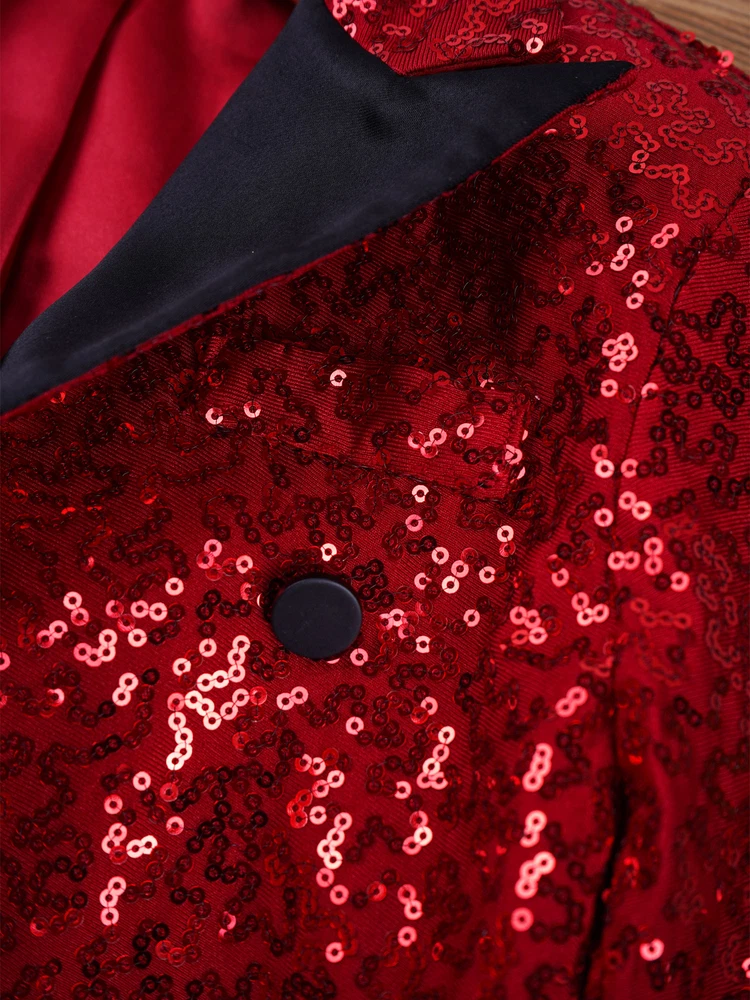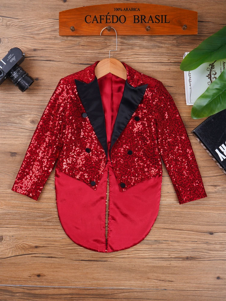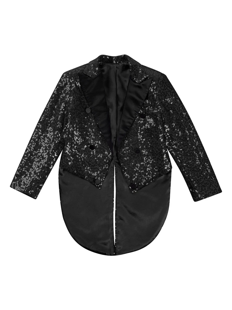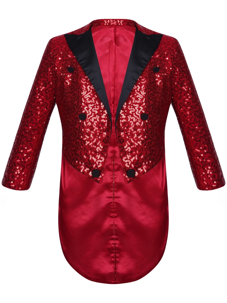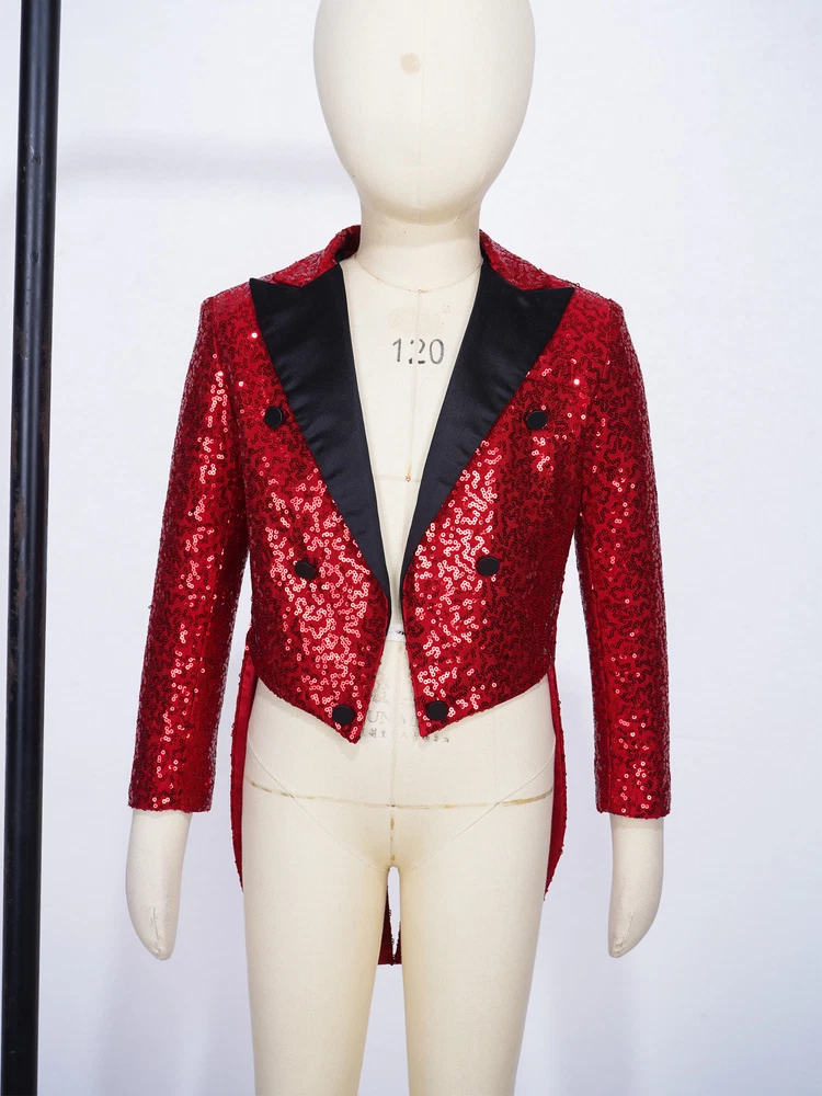 US Kids Boys Sequin Tailcoat Jacket Classic Fit Tuxedo with Tails Party Coat Top